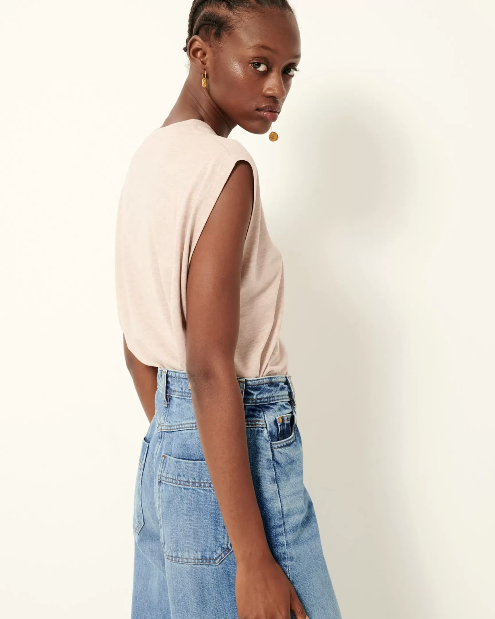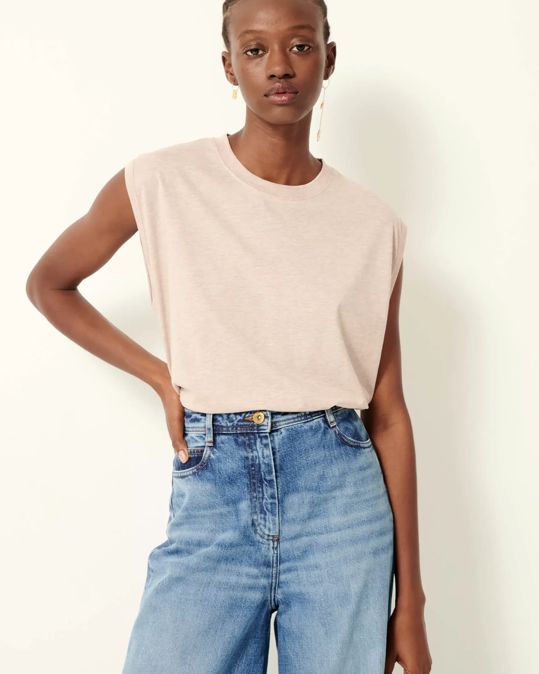 T-shirt sans manches en jersey fluide confectionné au Portugal.