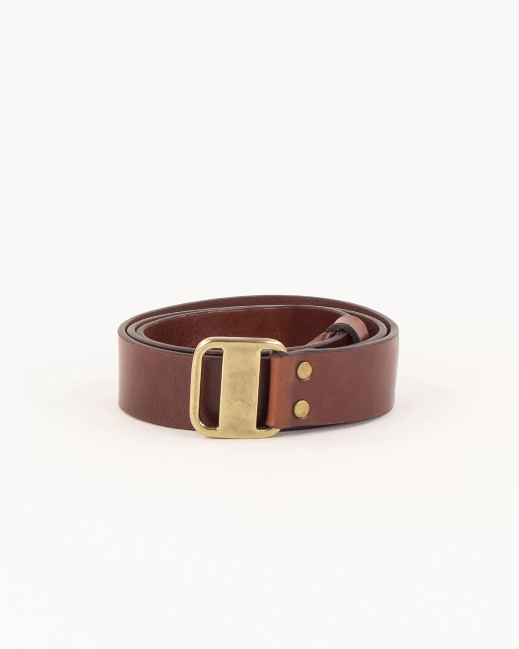Ceinture en cuir de vache tannage végétal avec boucle métal rectangle.