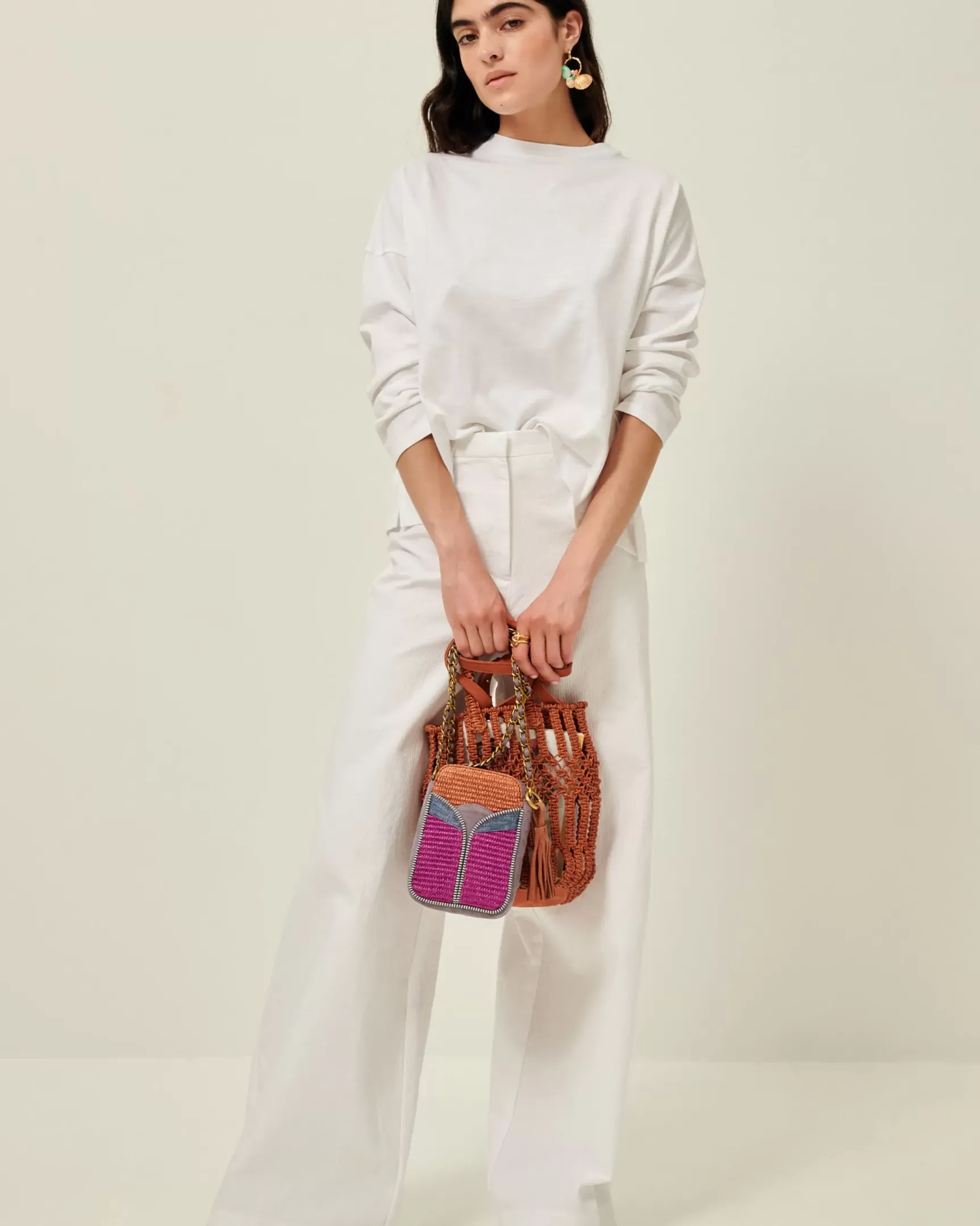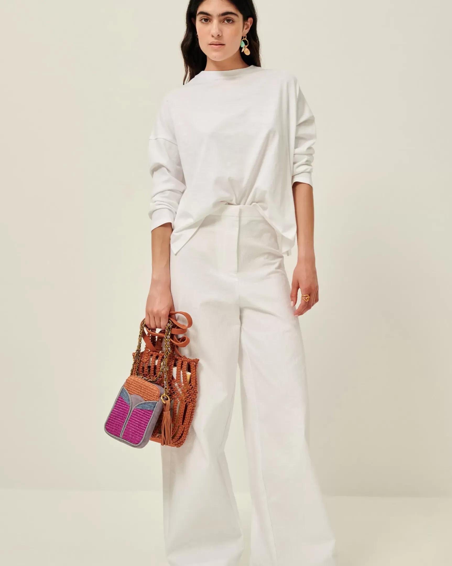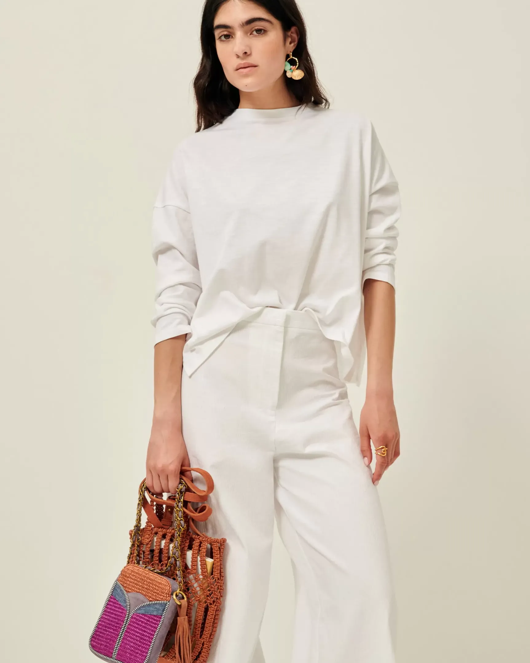 T-shirt manches longues à emmanchures basses en jersey flammé confectionné au Portugal.