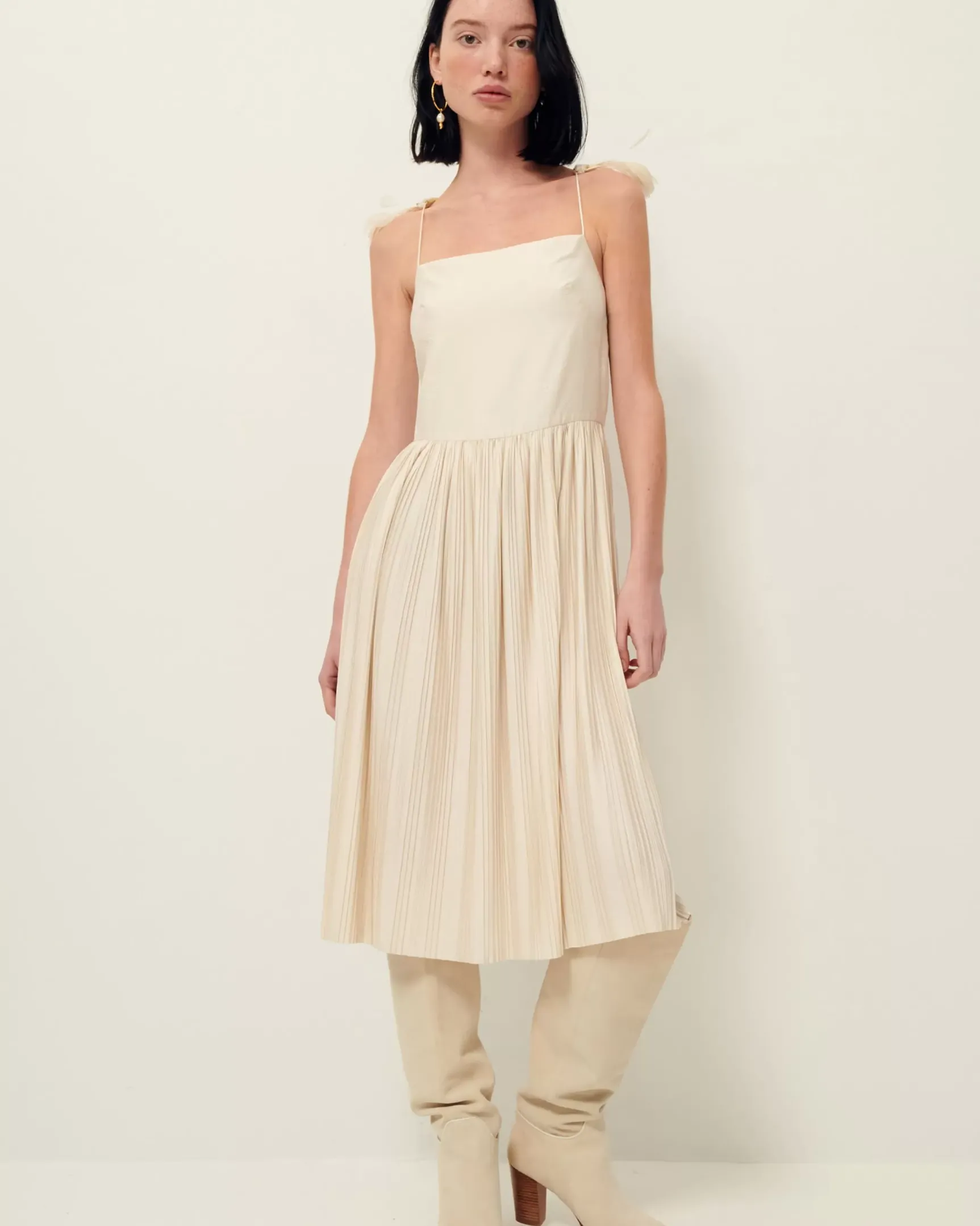 Robe mi longue en voilage satiné.