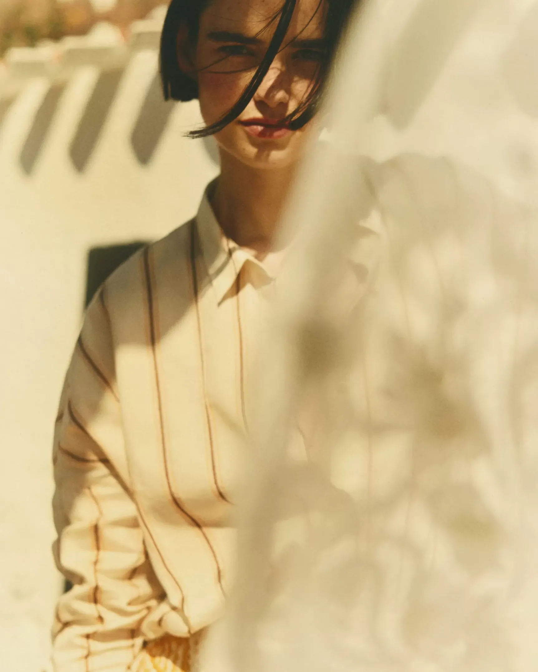 Chemise ample à emmanchures basses en popeline à rayures avec travail d’armure tissée en Italie, exclusive Sessùn.
