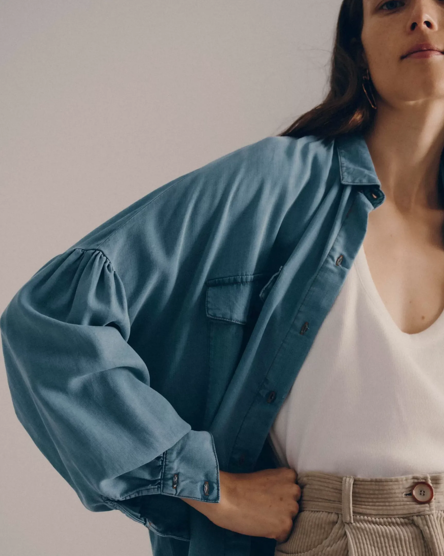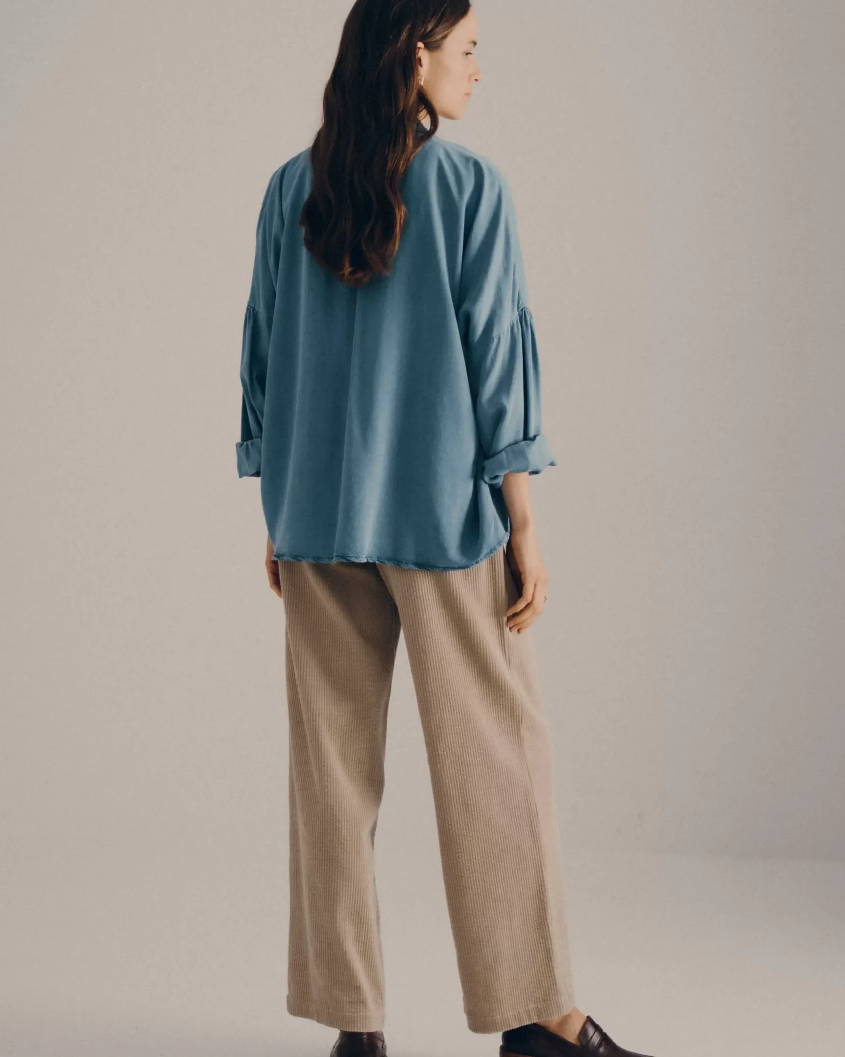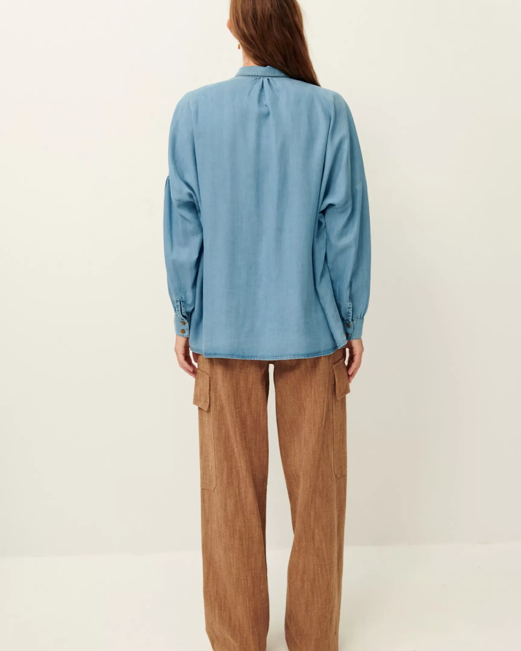 Chemise ample en chambray délavé, tissé en Espagne.