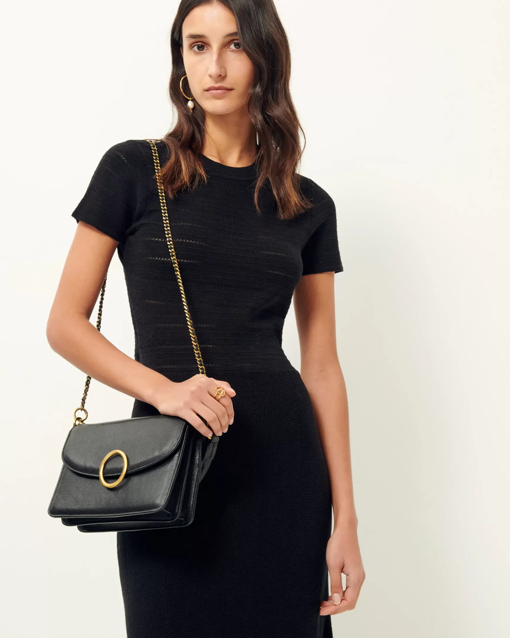 Robe longue à dos nu torsadé en maille fine ajourée.