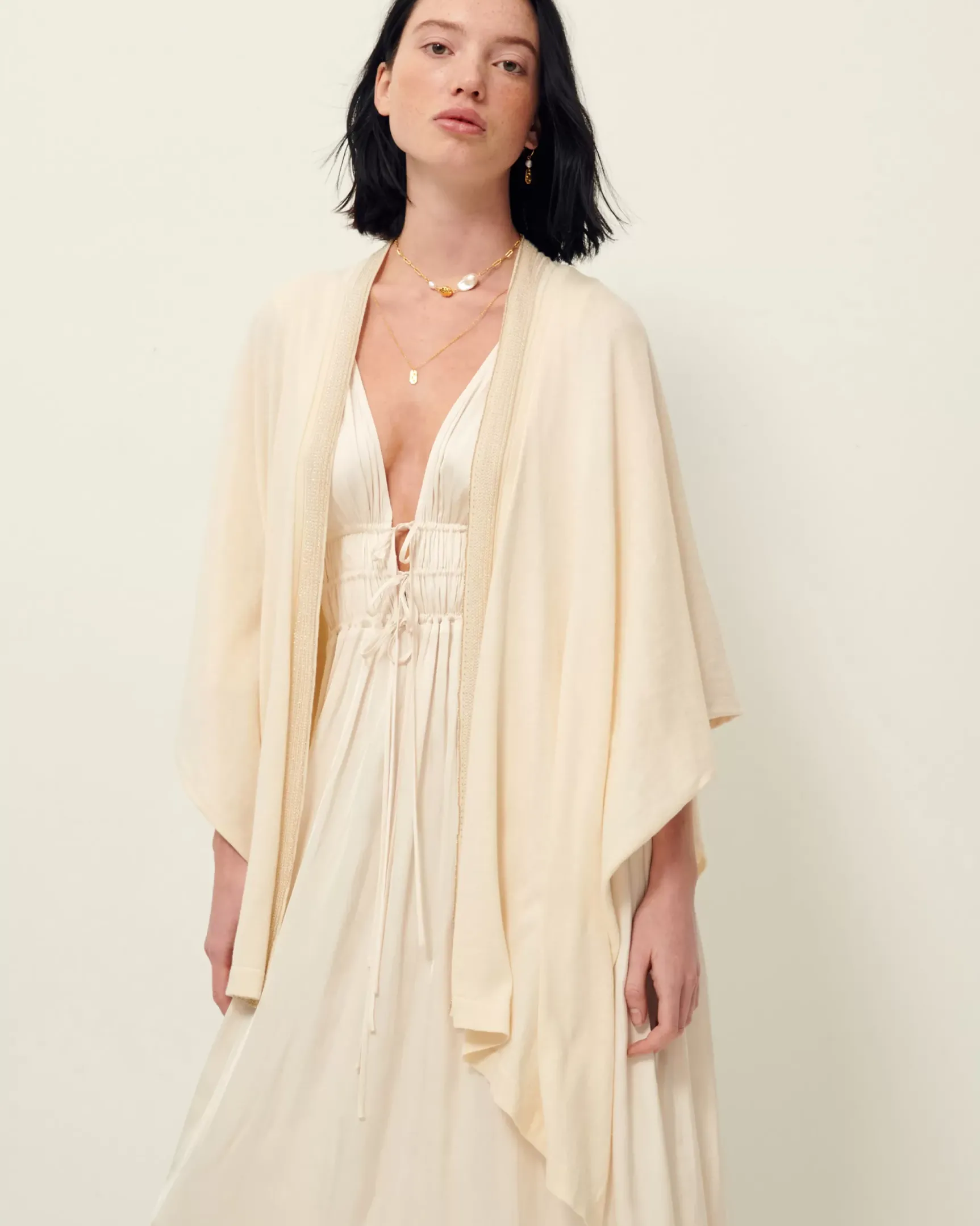 Robe longue à liens en satin fluide et aérien effet légèrement créponné.