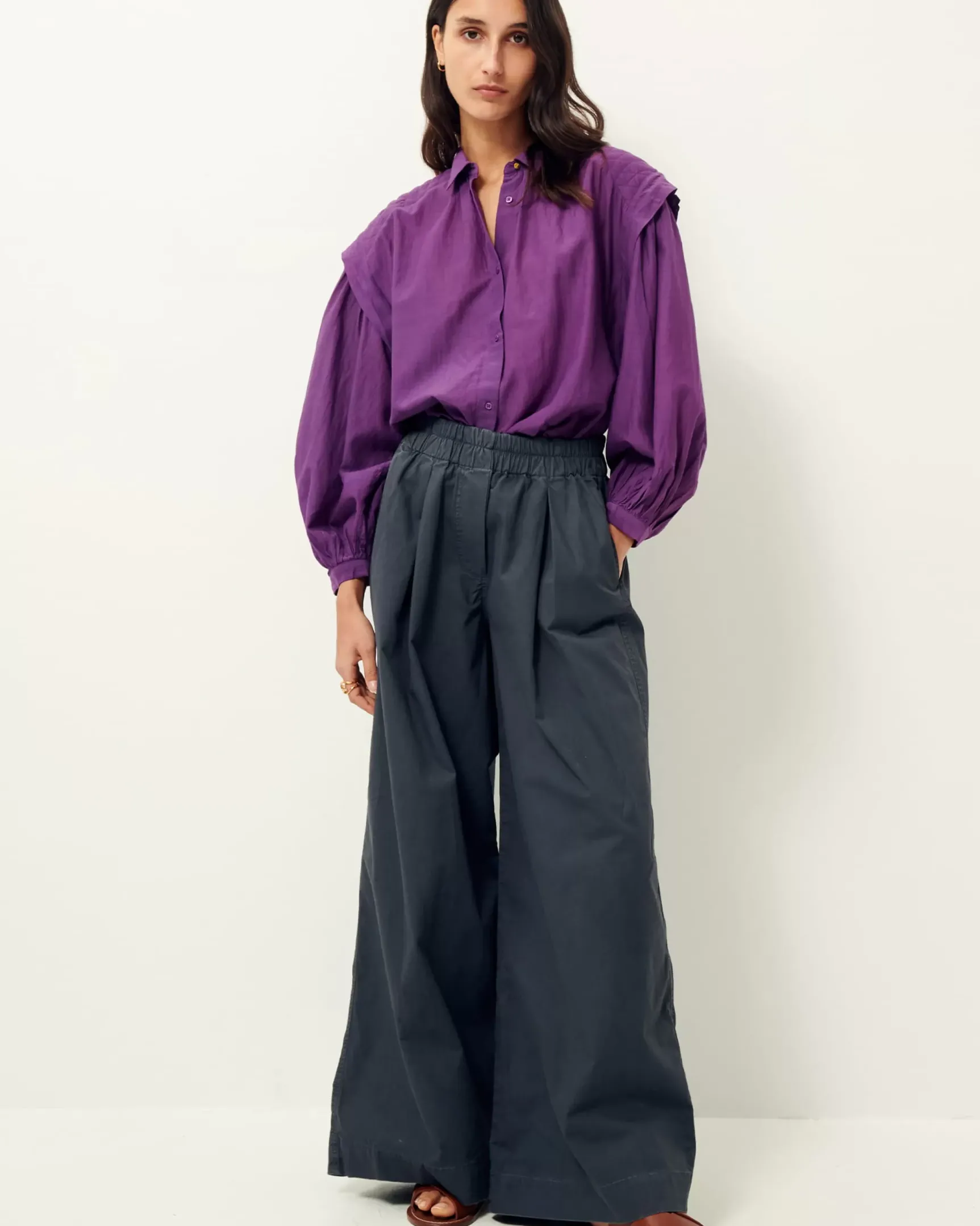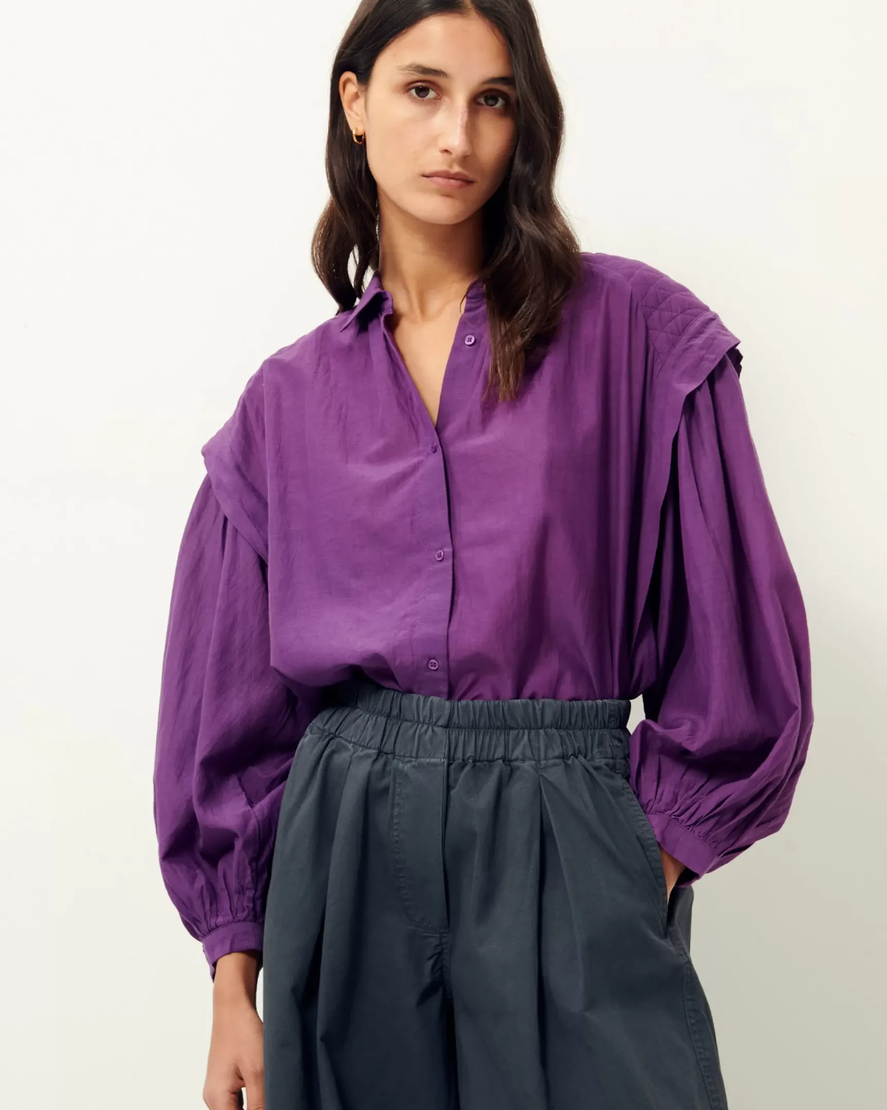 Chemise à plis plats aux côtés en voile de coton / viscose.