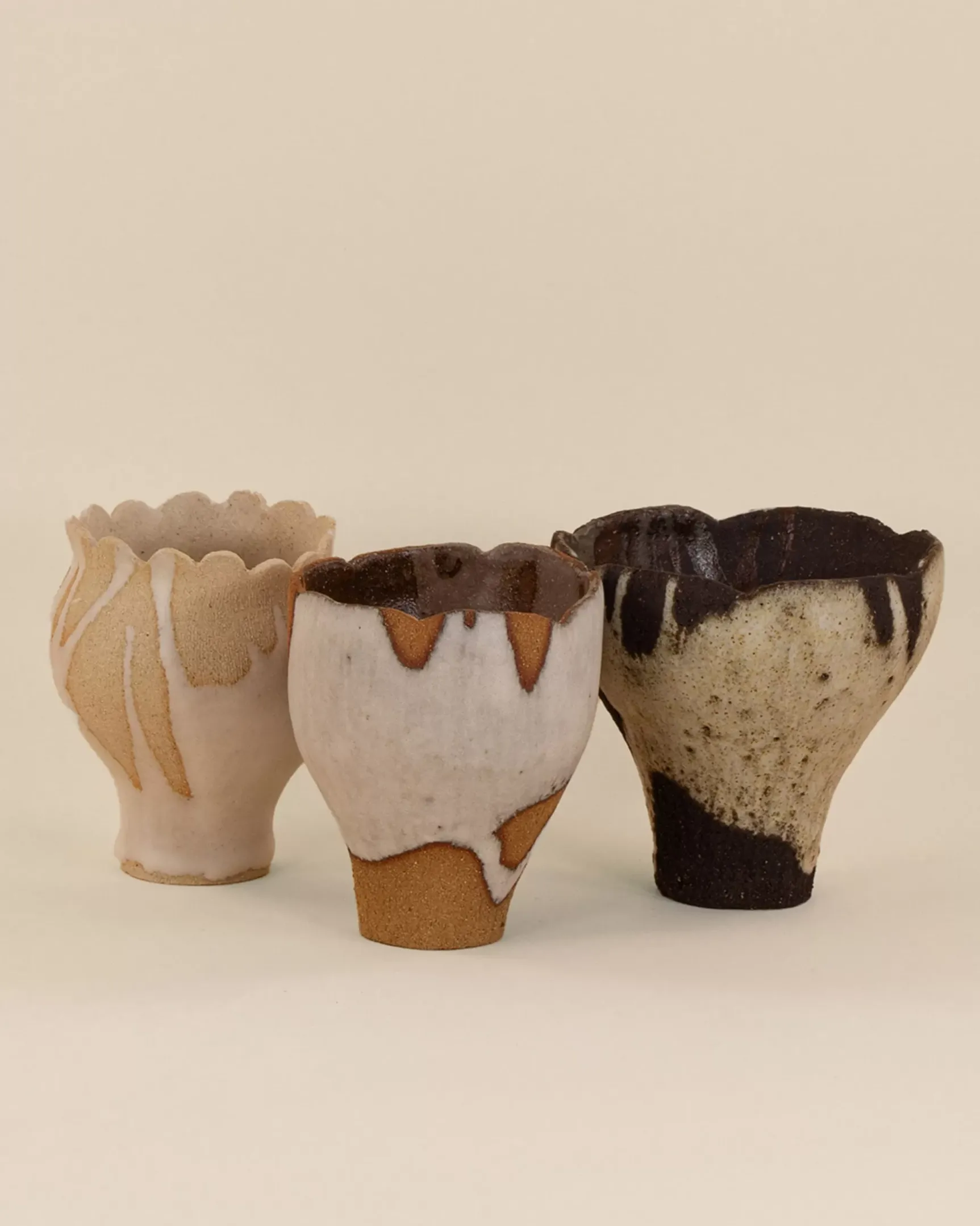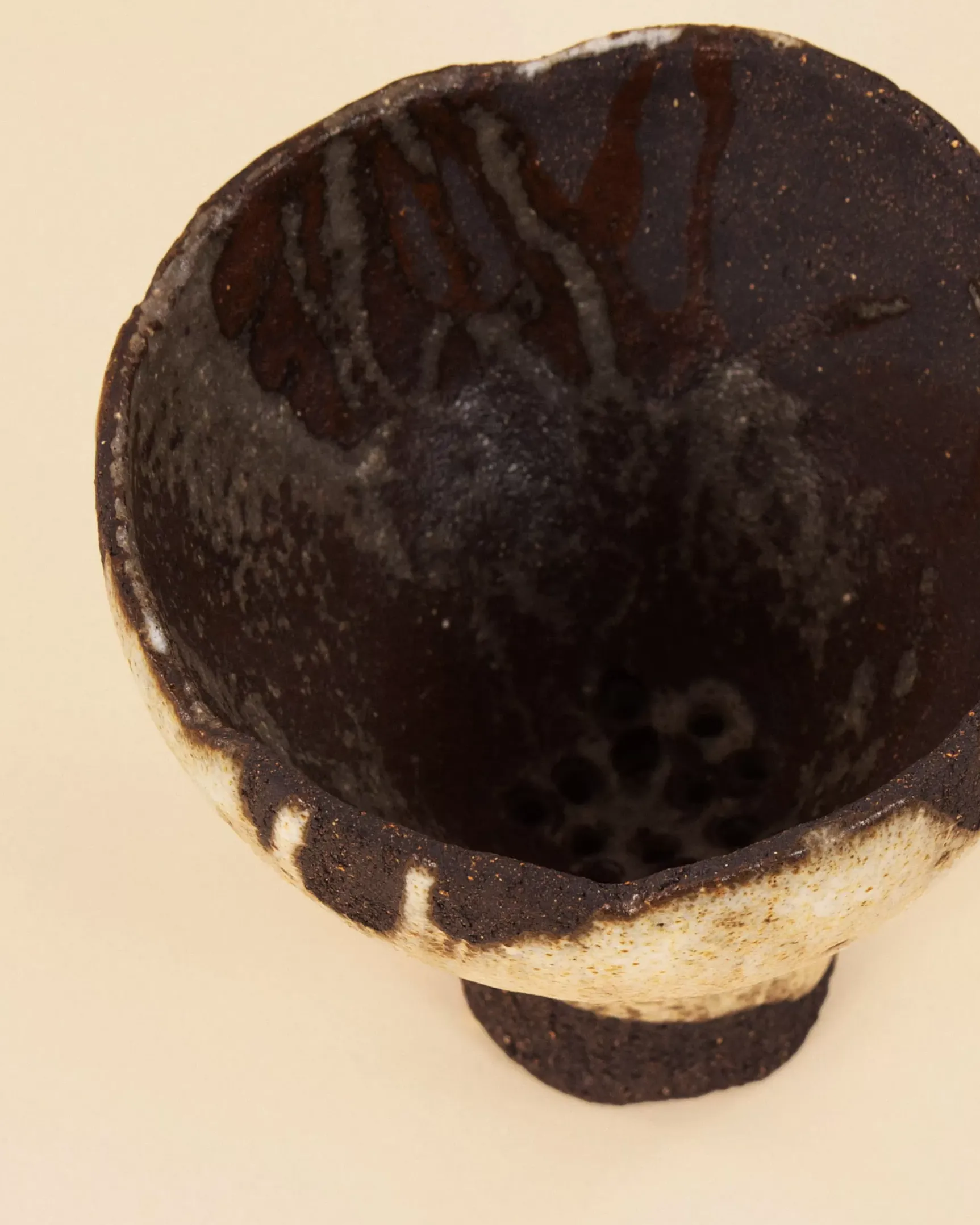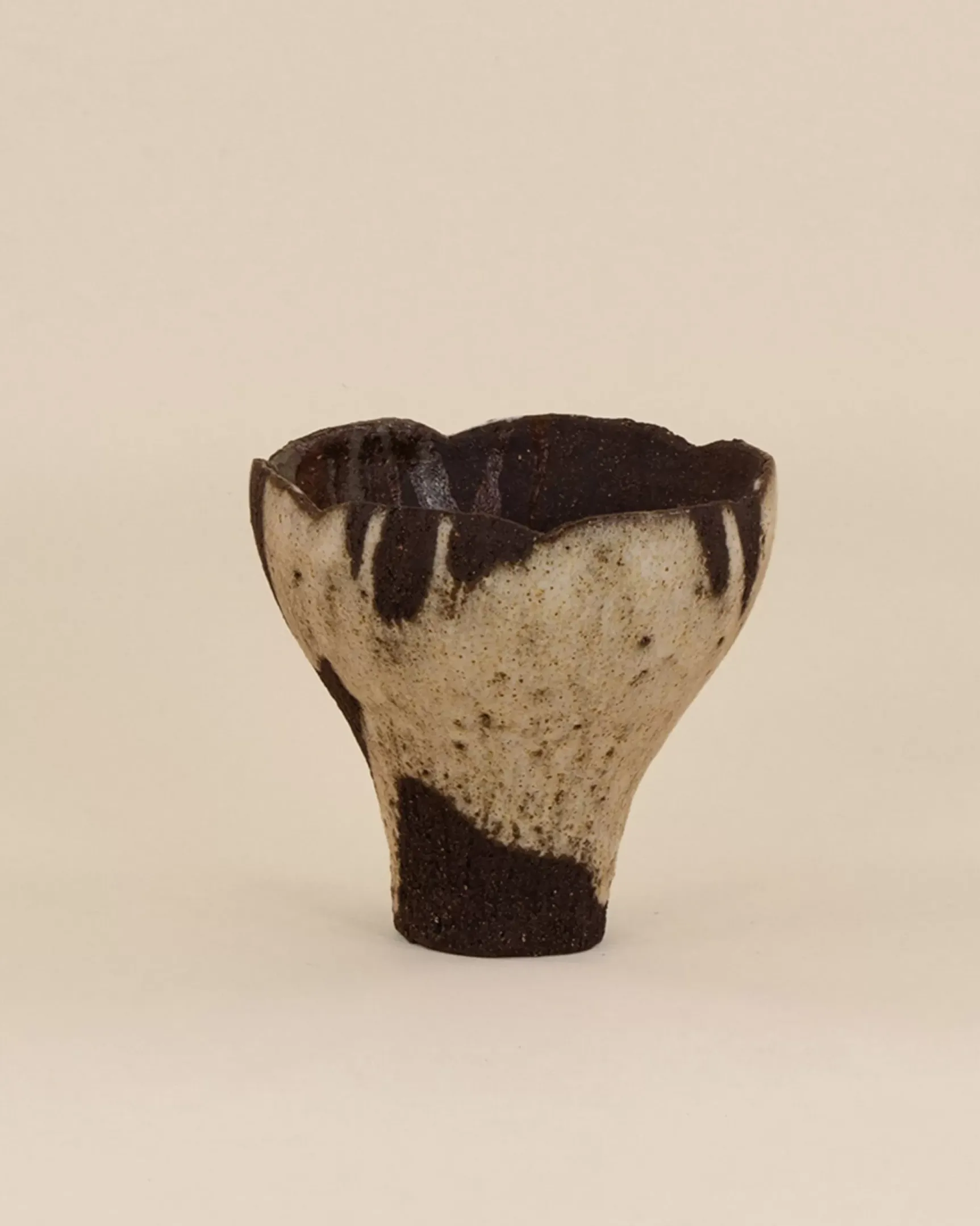 Modelé à la main en grès noir chamotté. Email blanc mat.