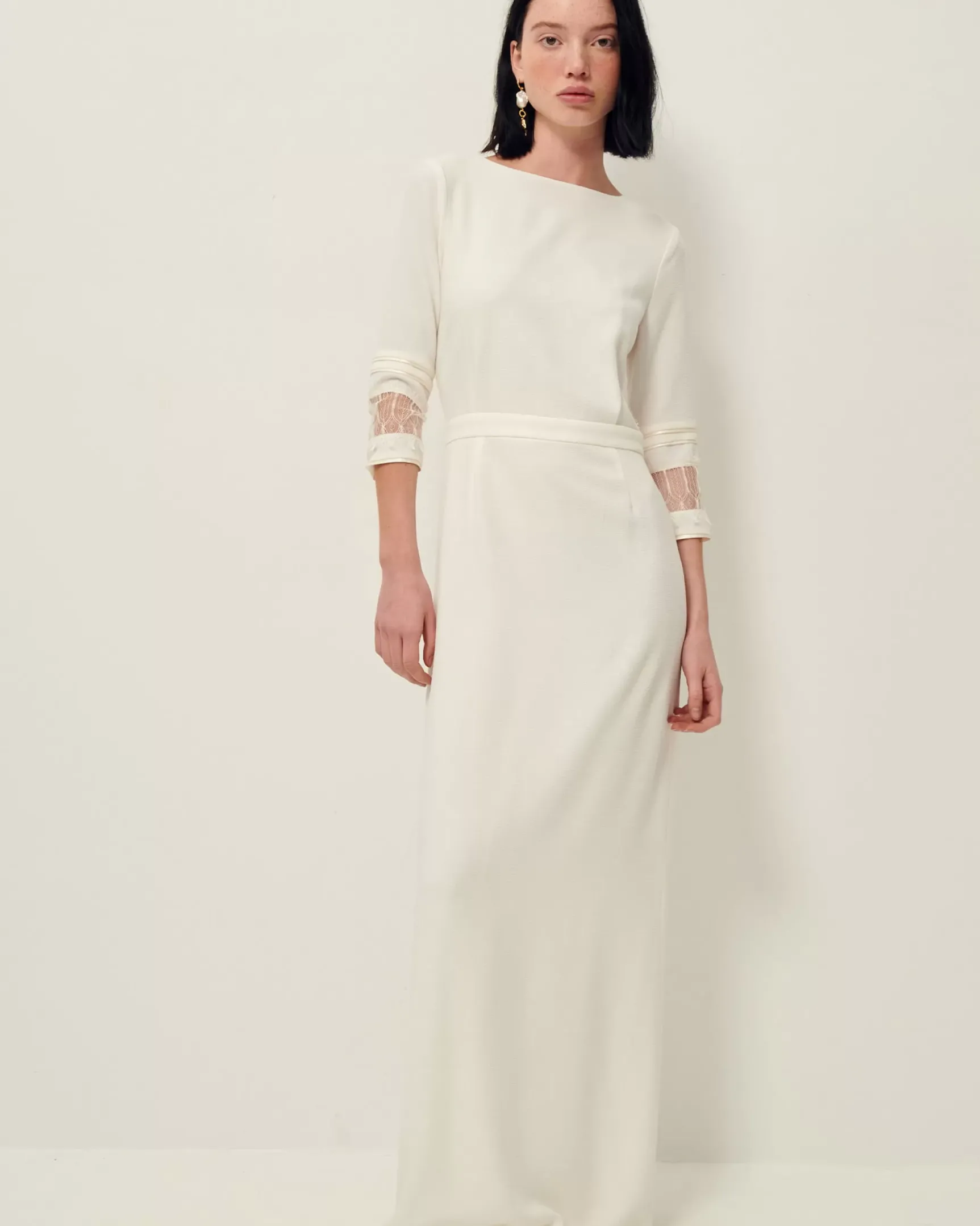 Détails galons en dentelle de Calais sur les poignets et au dos.