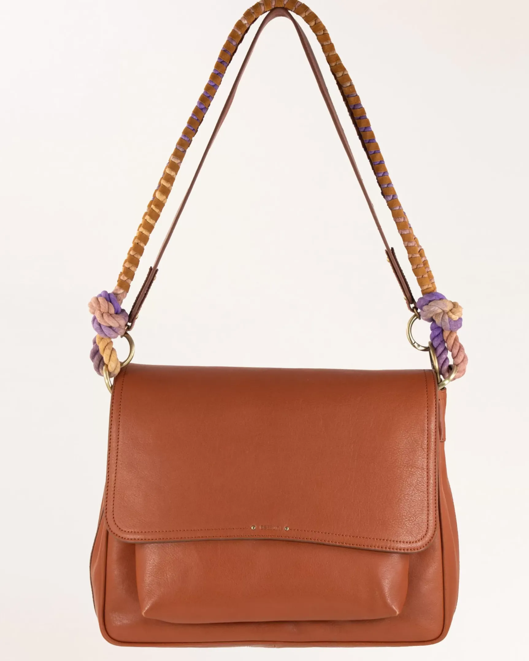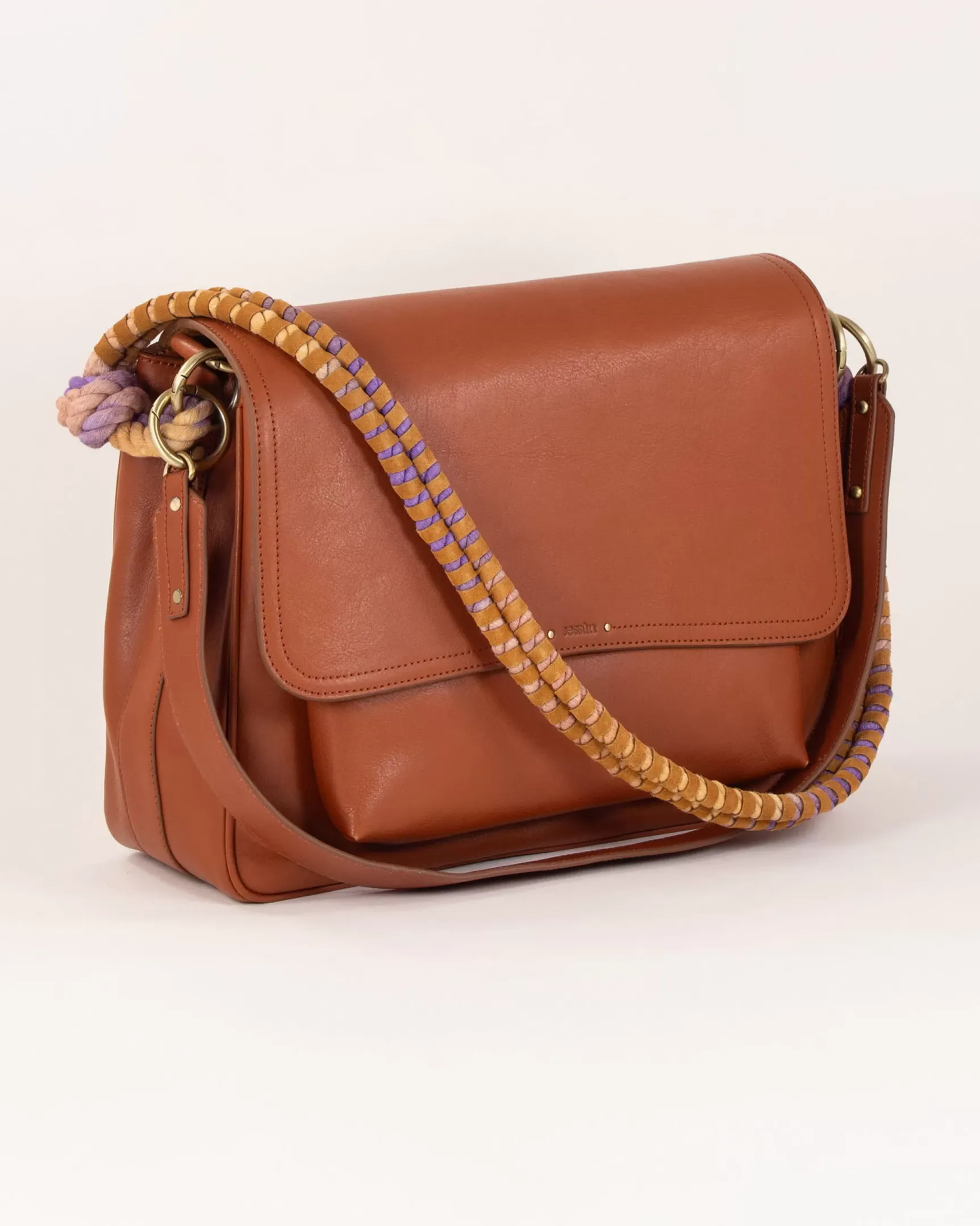 Anse fantaisie corde tie & dye tressée de croûte de cuir et anse en cuir.