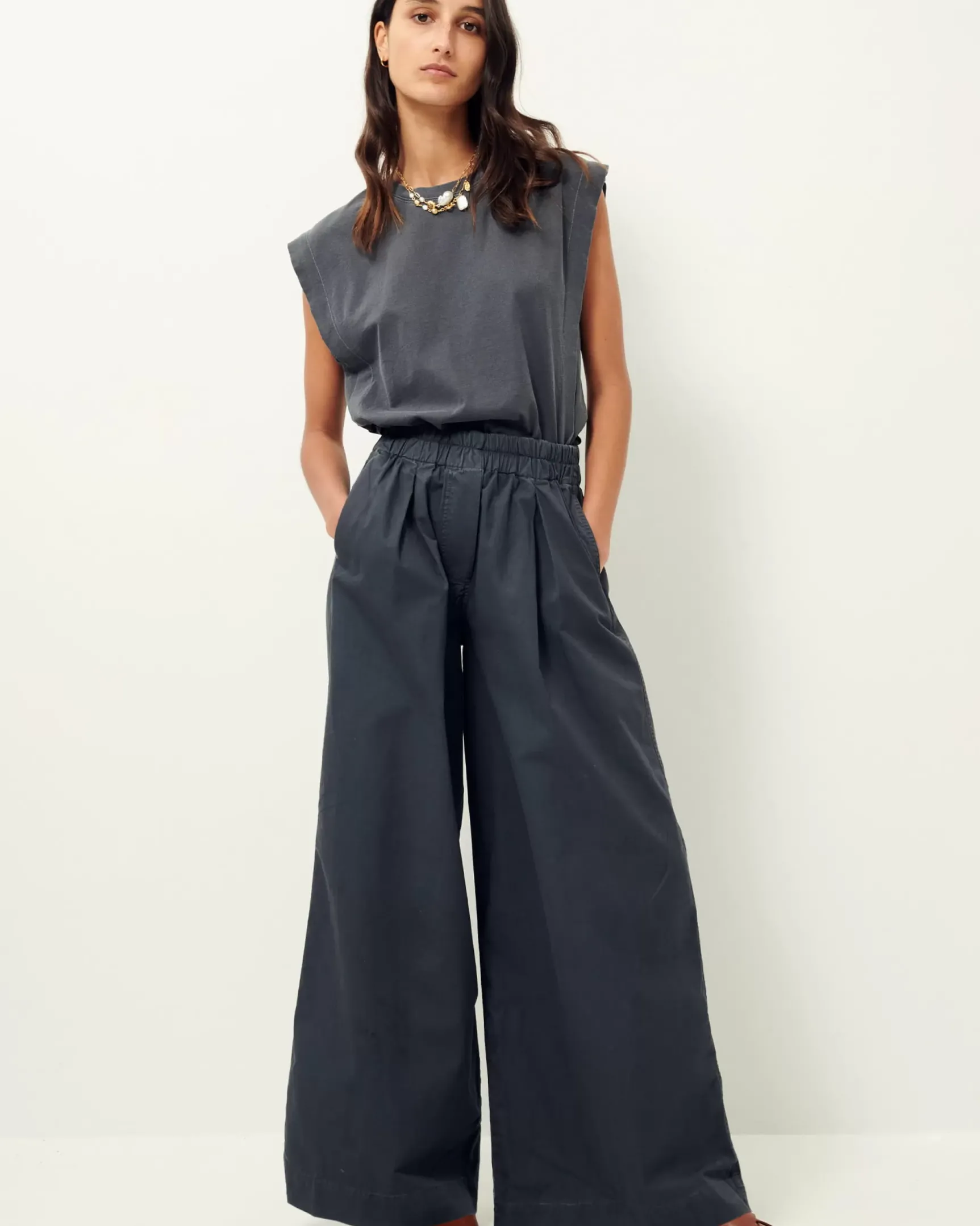 T-shirt sans manches à plis en jersey teint en pigmentaire, confectionné et teint artisanalement au Portugal.