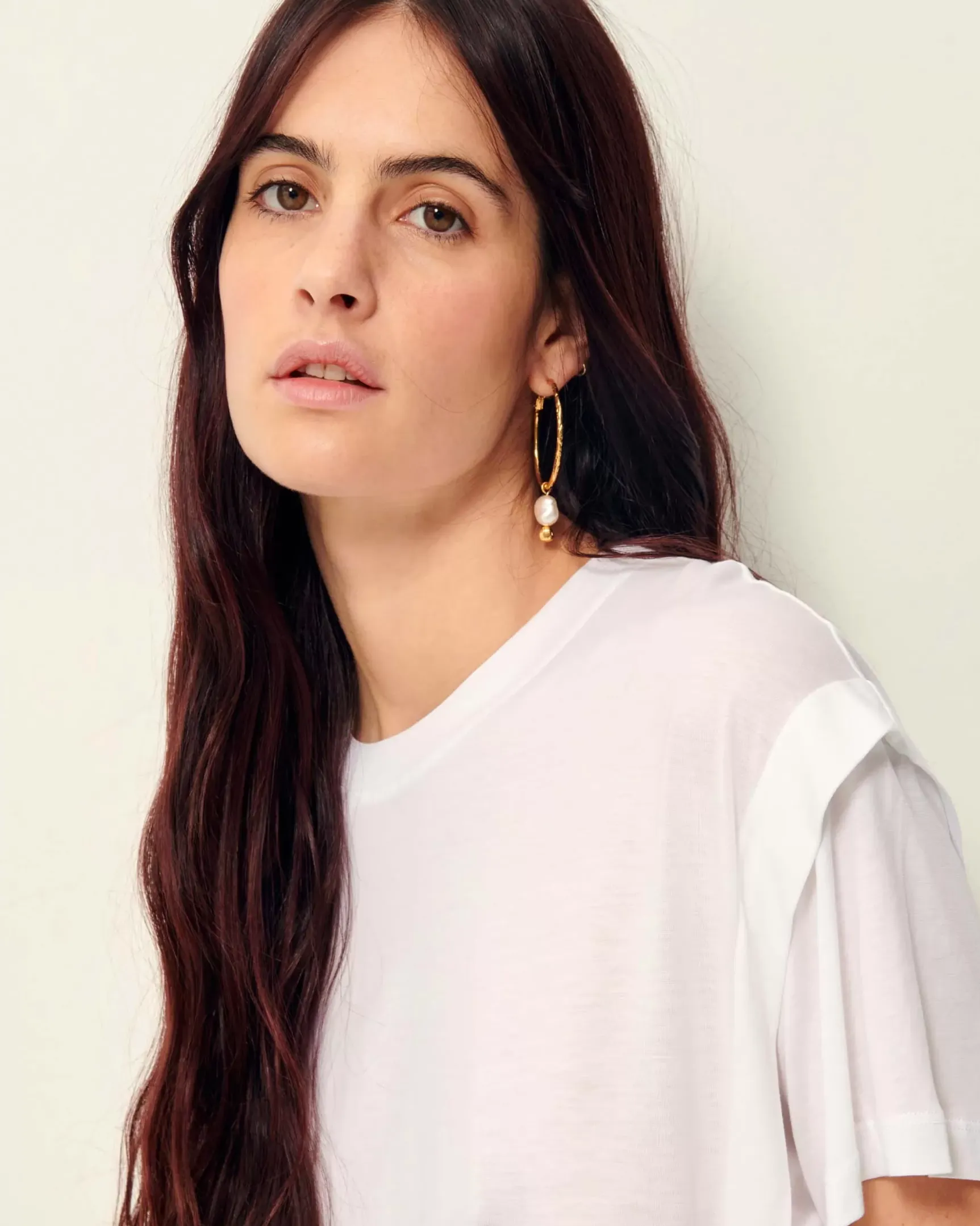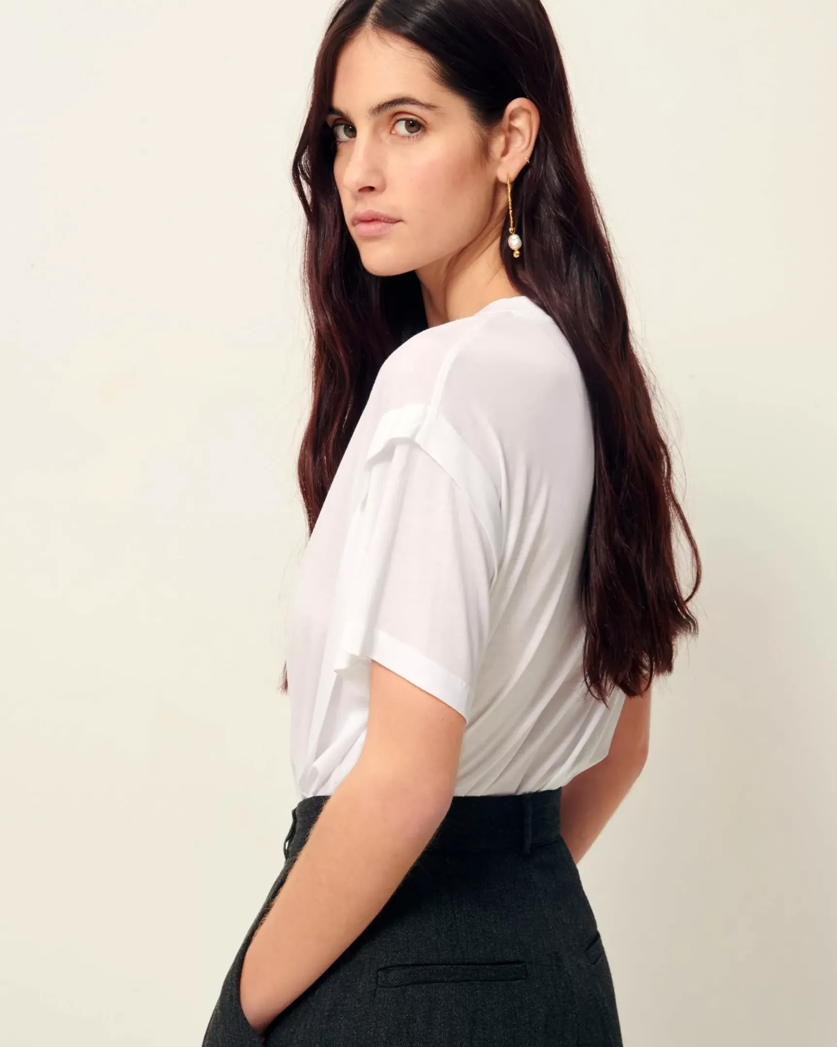 T-shirt manches courtes à plis en jersey fluide, confectionné au Portugal.