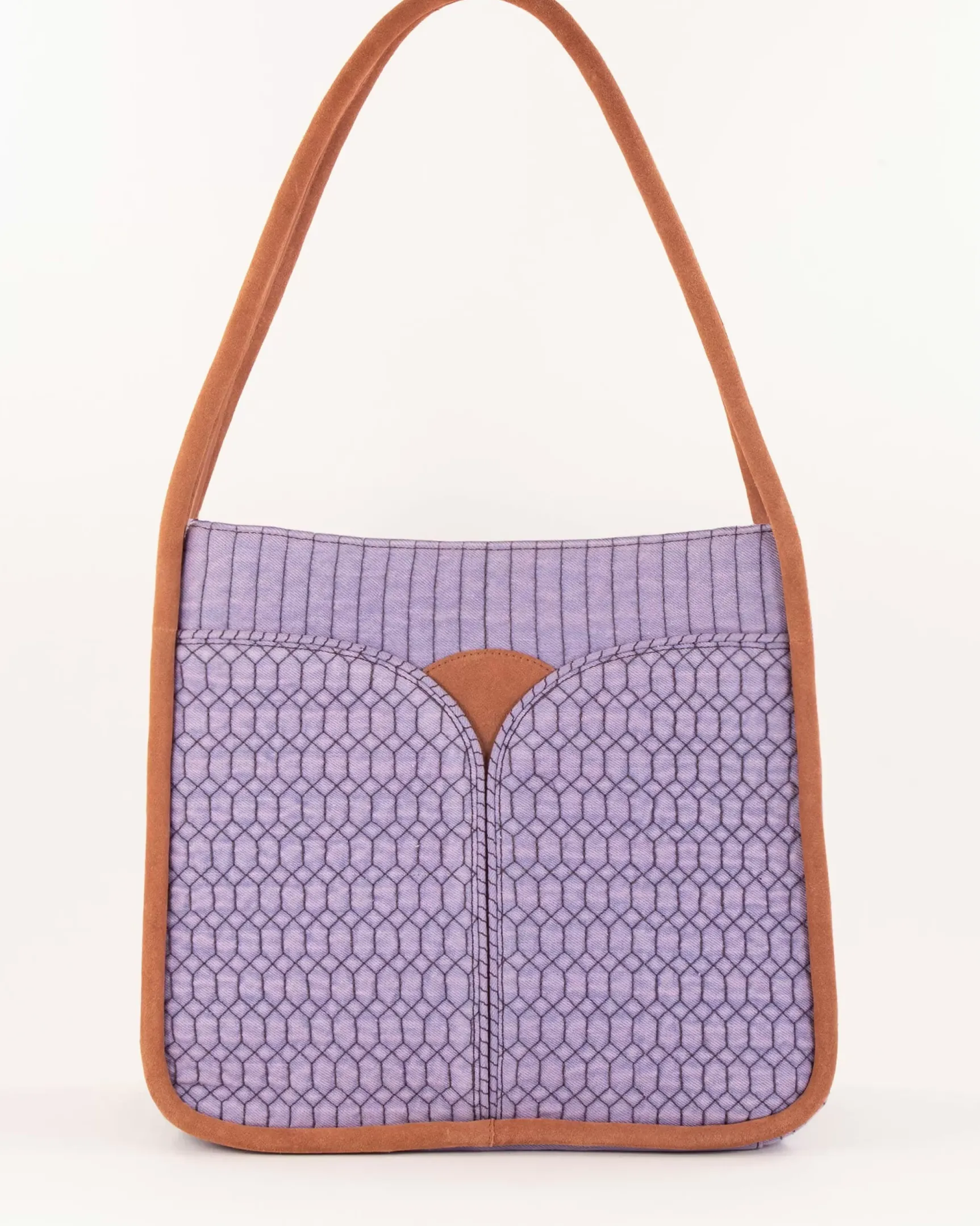 Sac en denim matelassé surpiqué effet boutis, motif exclusif Sessùn.