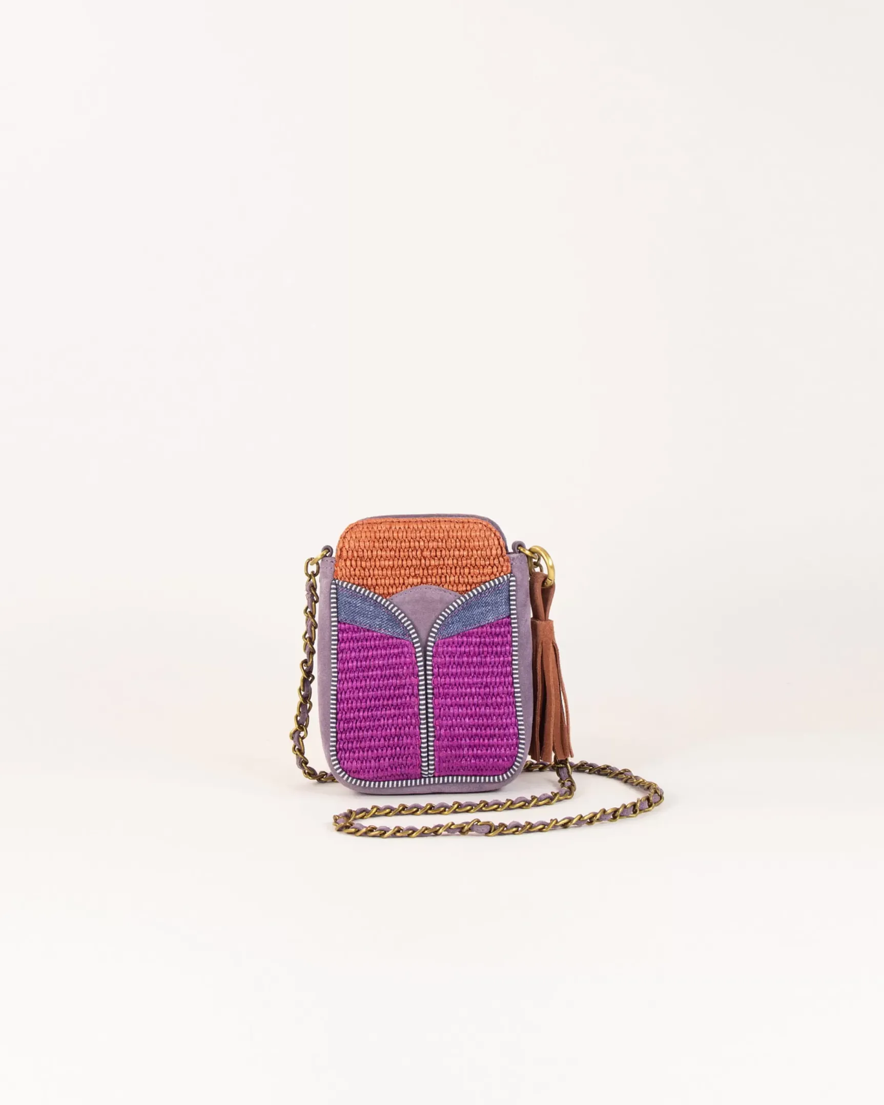 Porte portable en raphia et croûte de cuir.