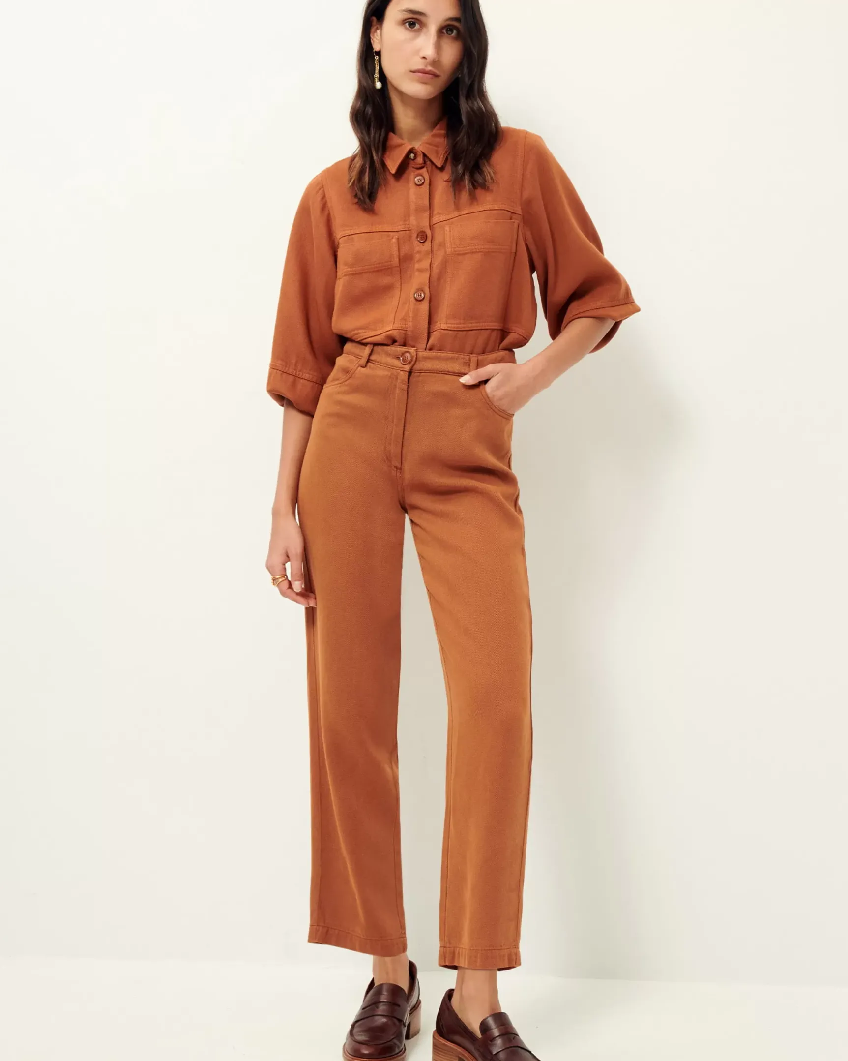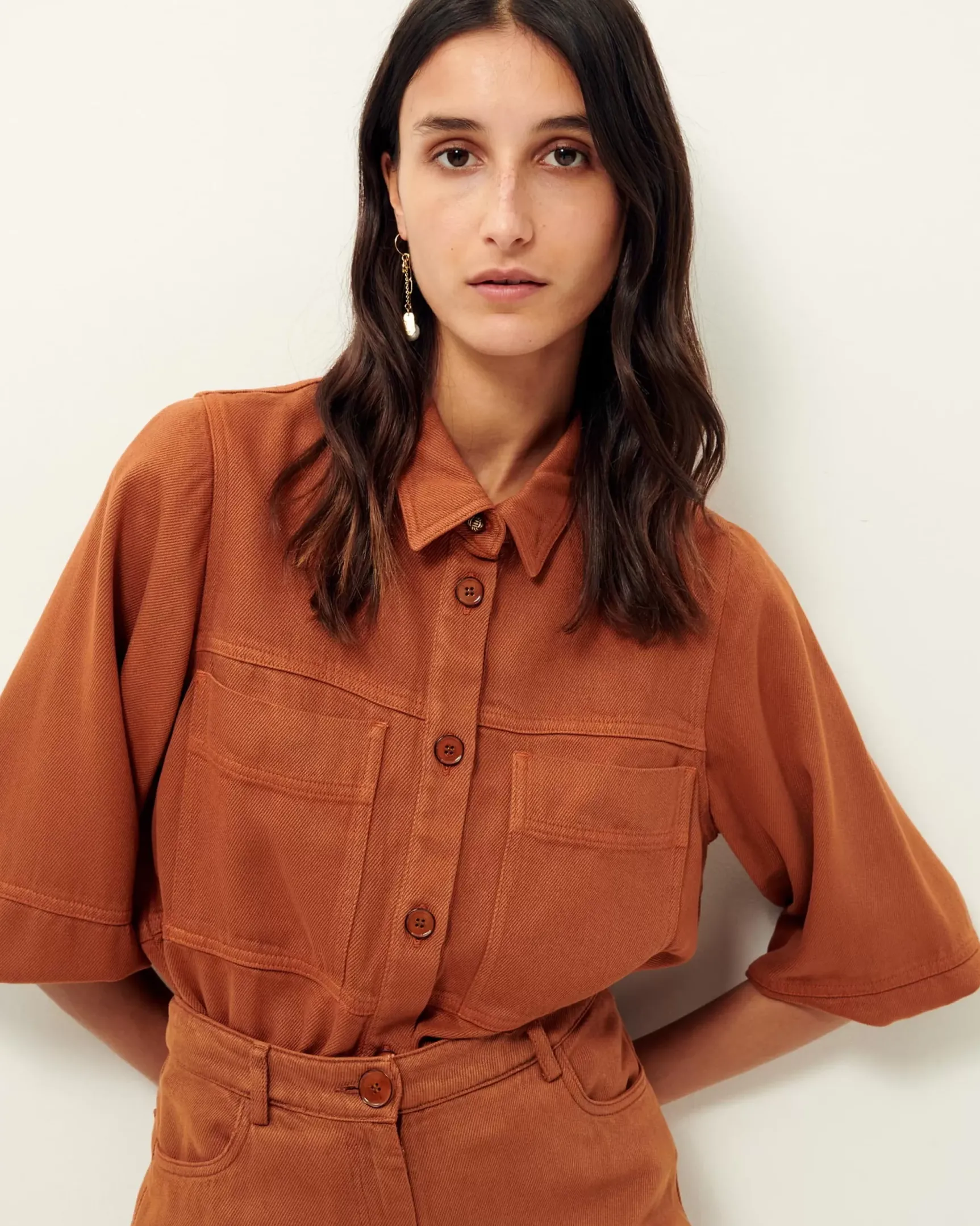 Surchemise à manches ballon en gabardine de lyocell fluide teinte en plongée tissée en Espagne.