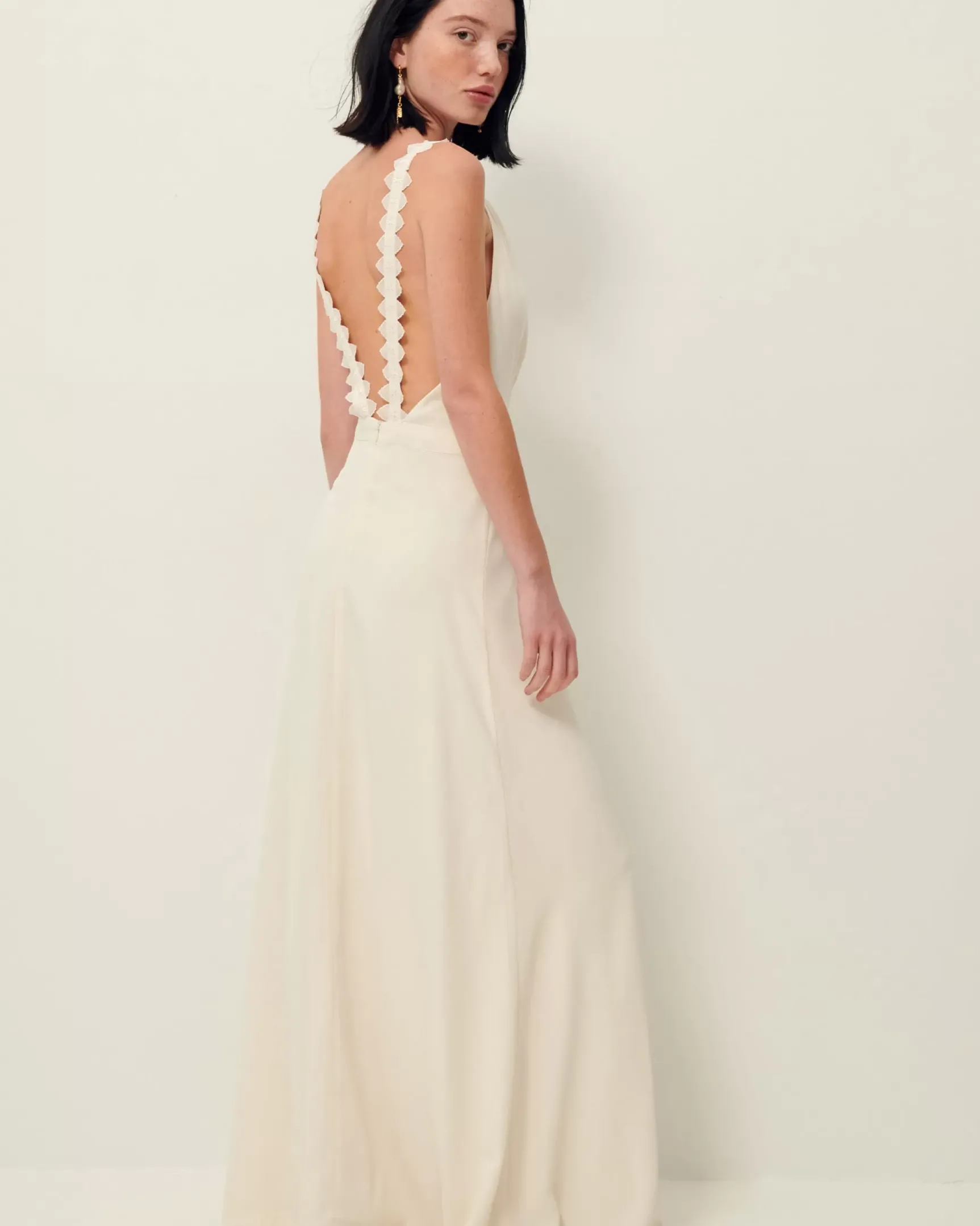 Robe longue en crêpe uni.