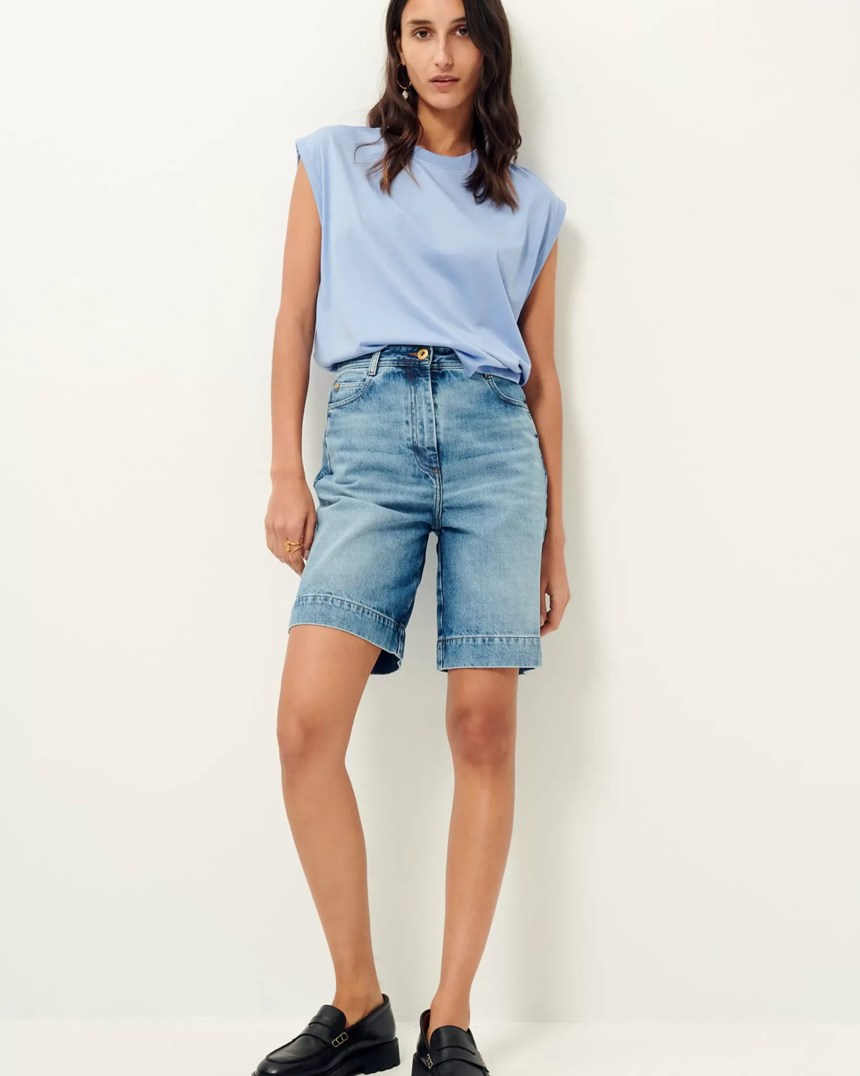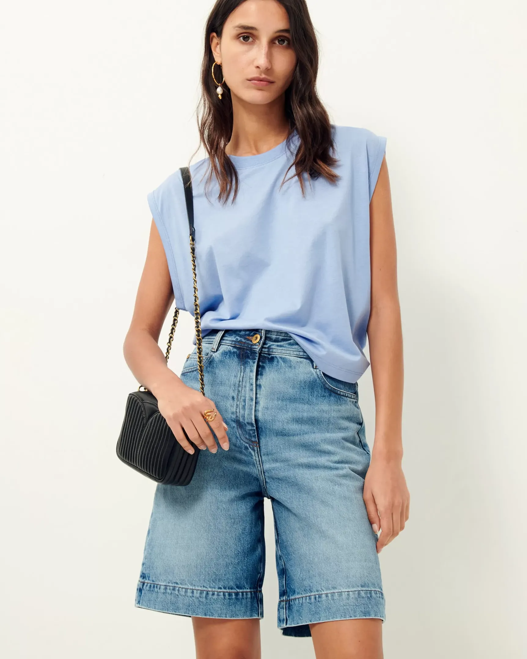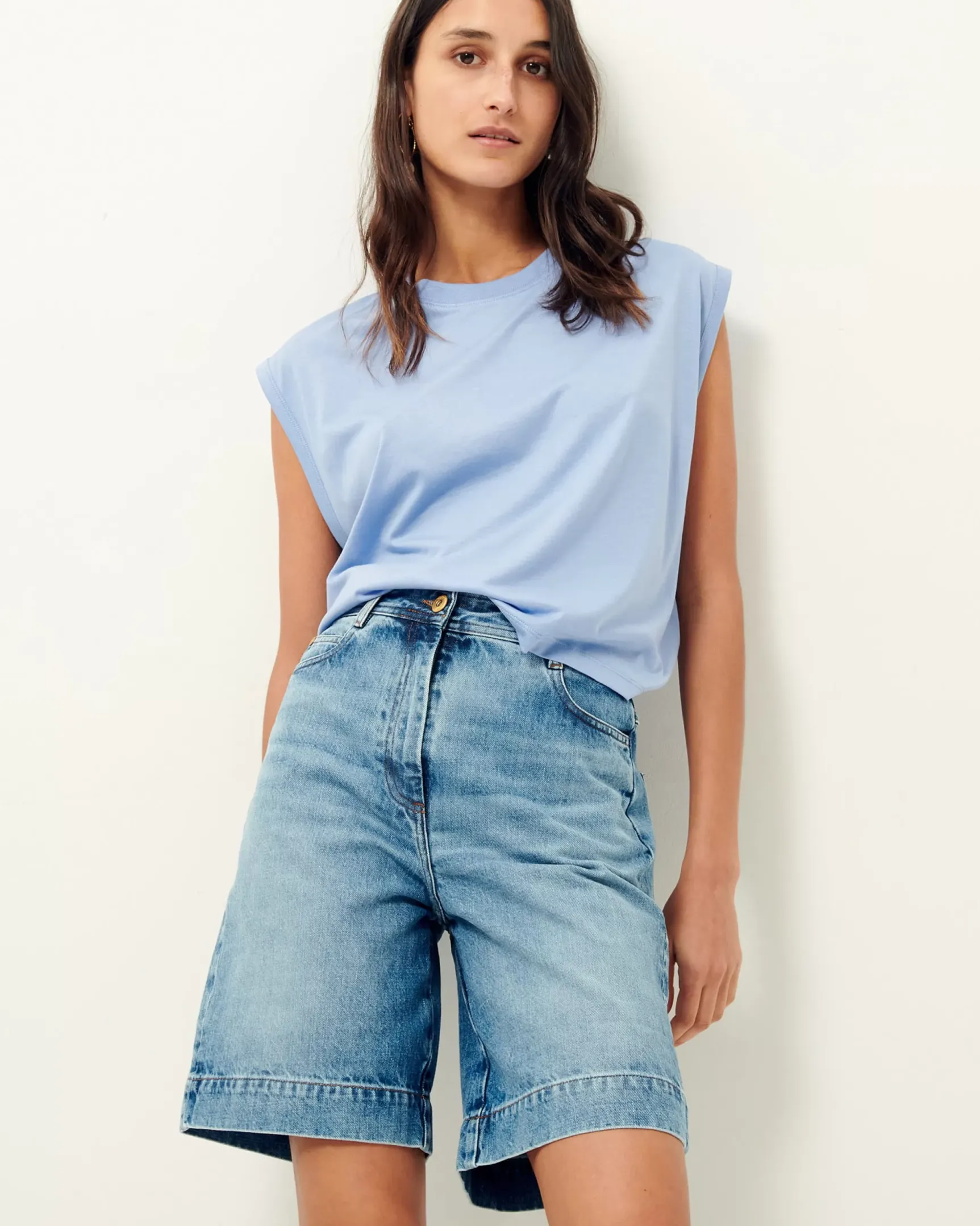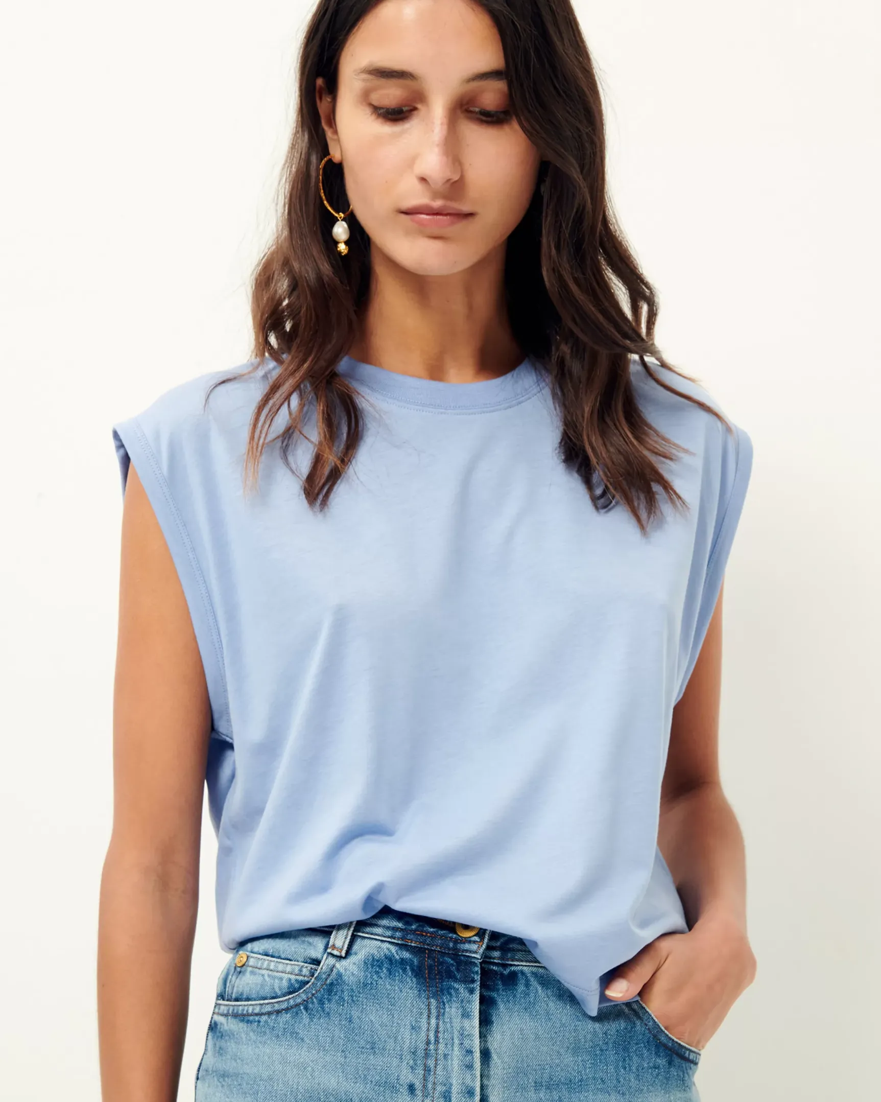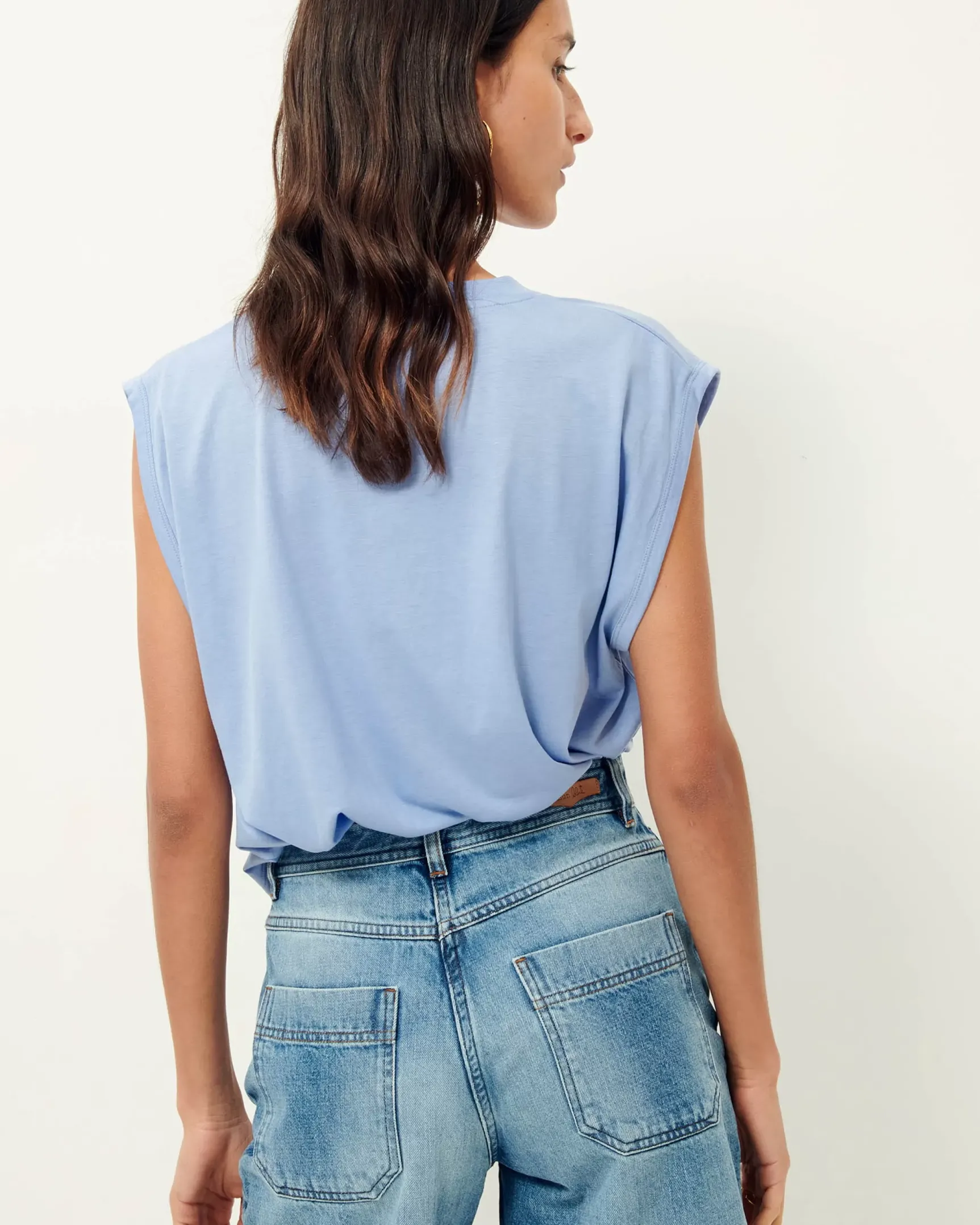 T-shirt col rond sans manches en jersey fluide confectionné au Portugal.
