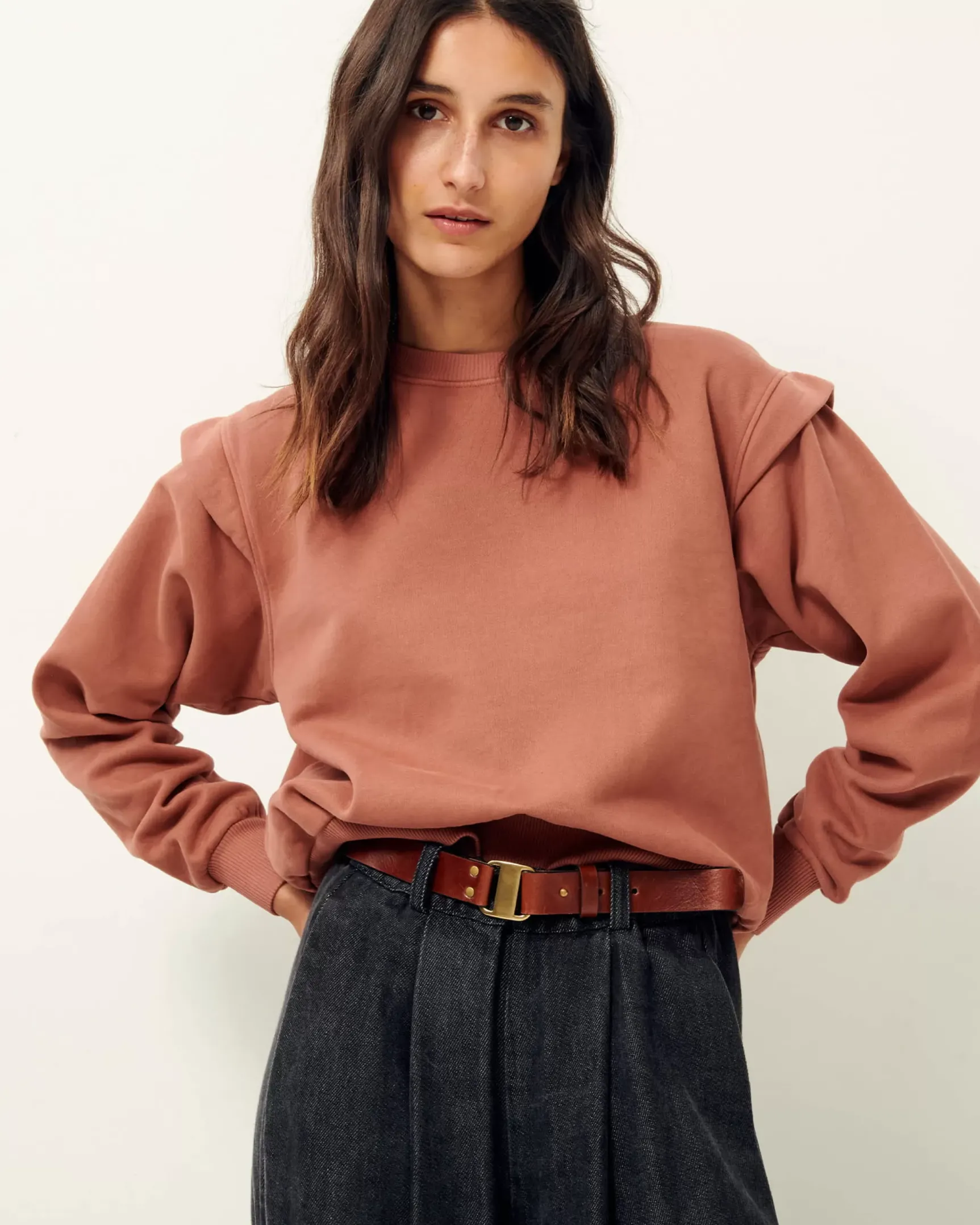 Ceinture en cuir de vache tannage végétal avec boucle métal rectangle.