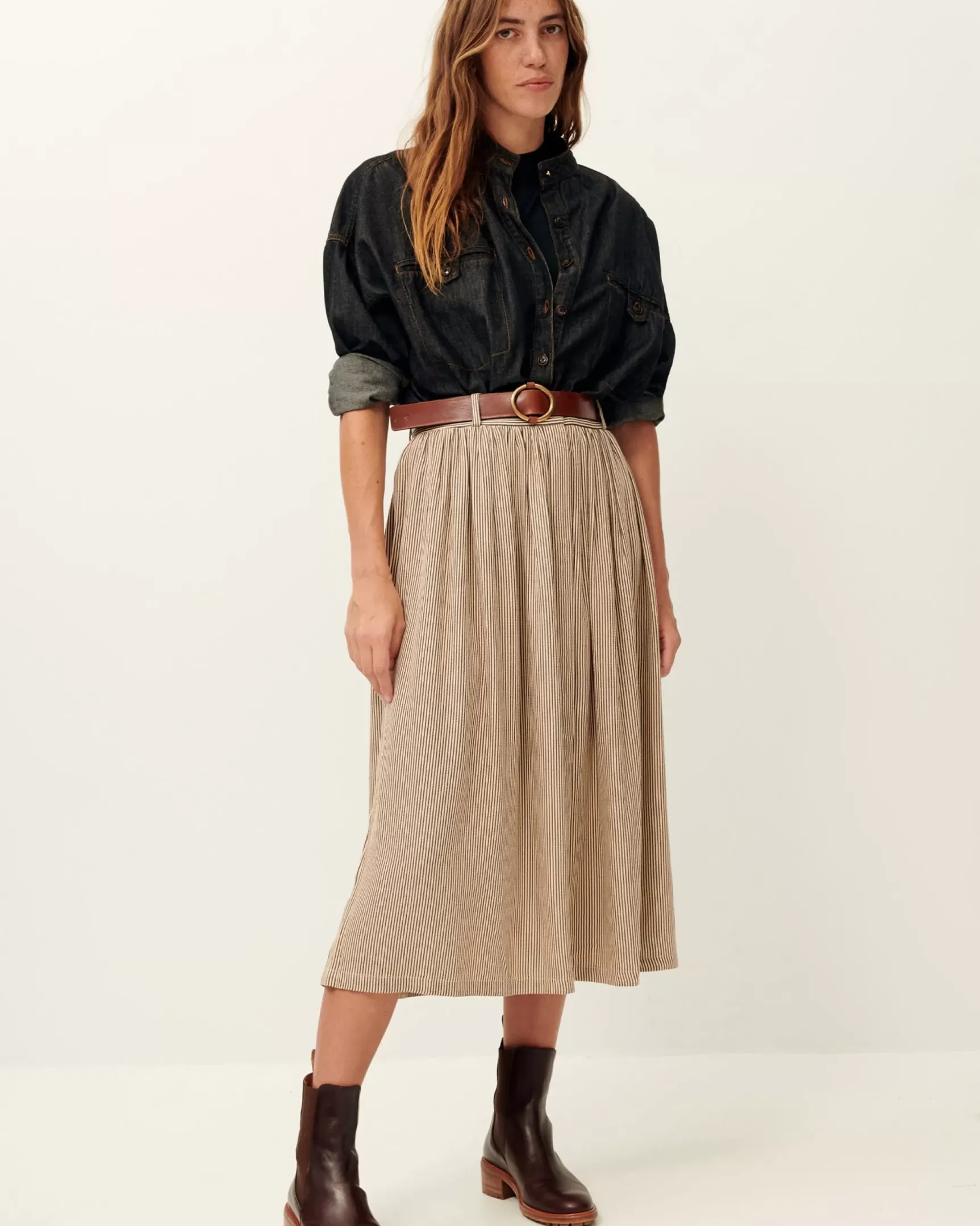 Ceinture boucle coulissante en cuir de vachette à tannage végétal.