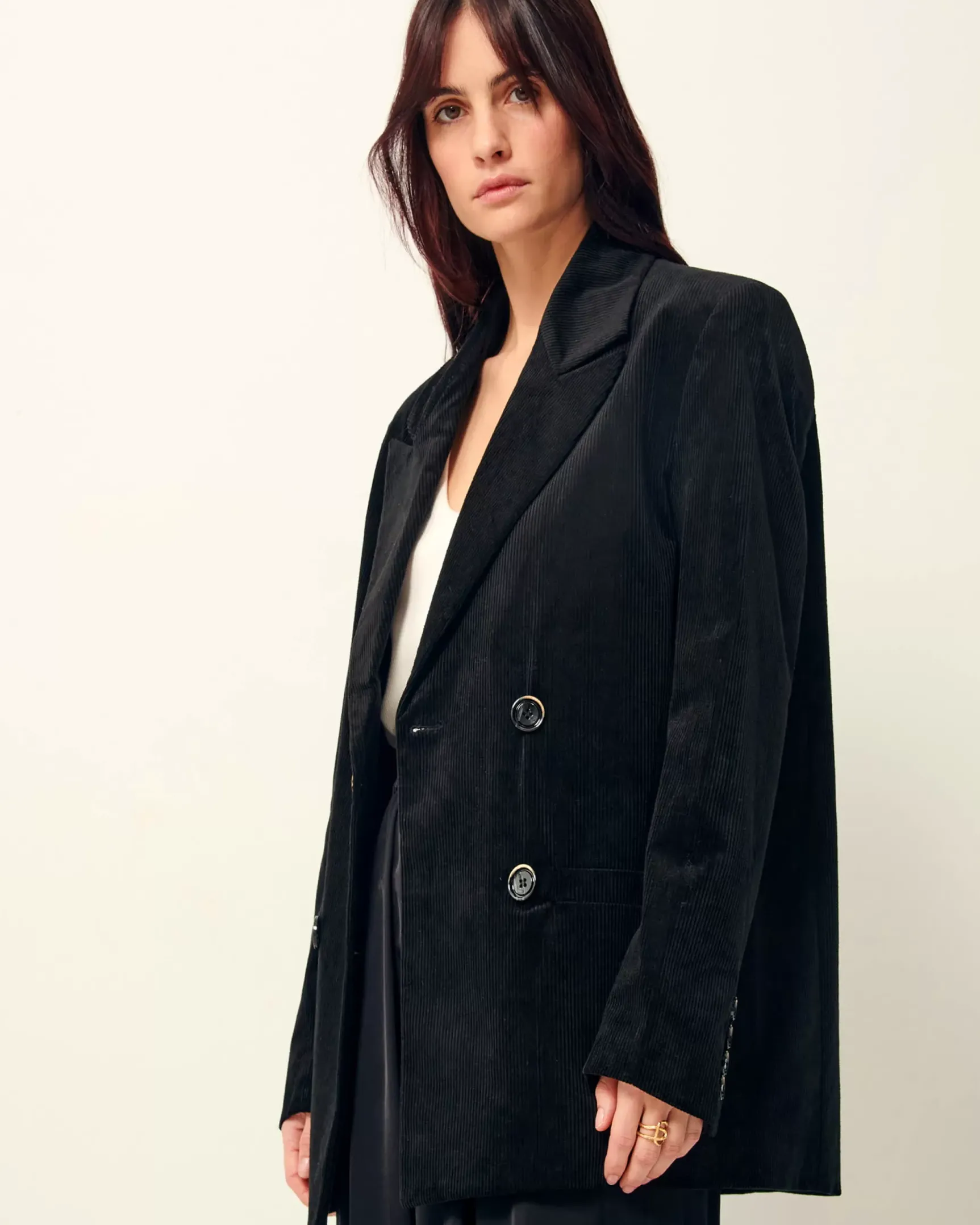 Veste de costume à double boutonnage en velours côtelé 300 raies.