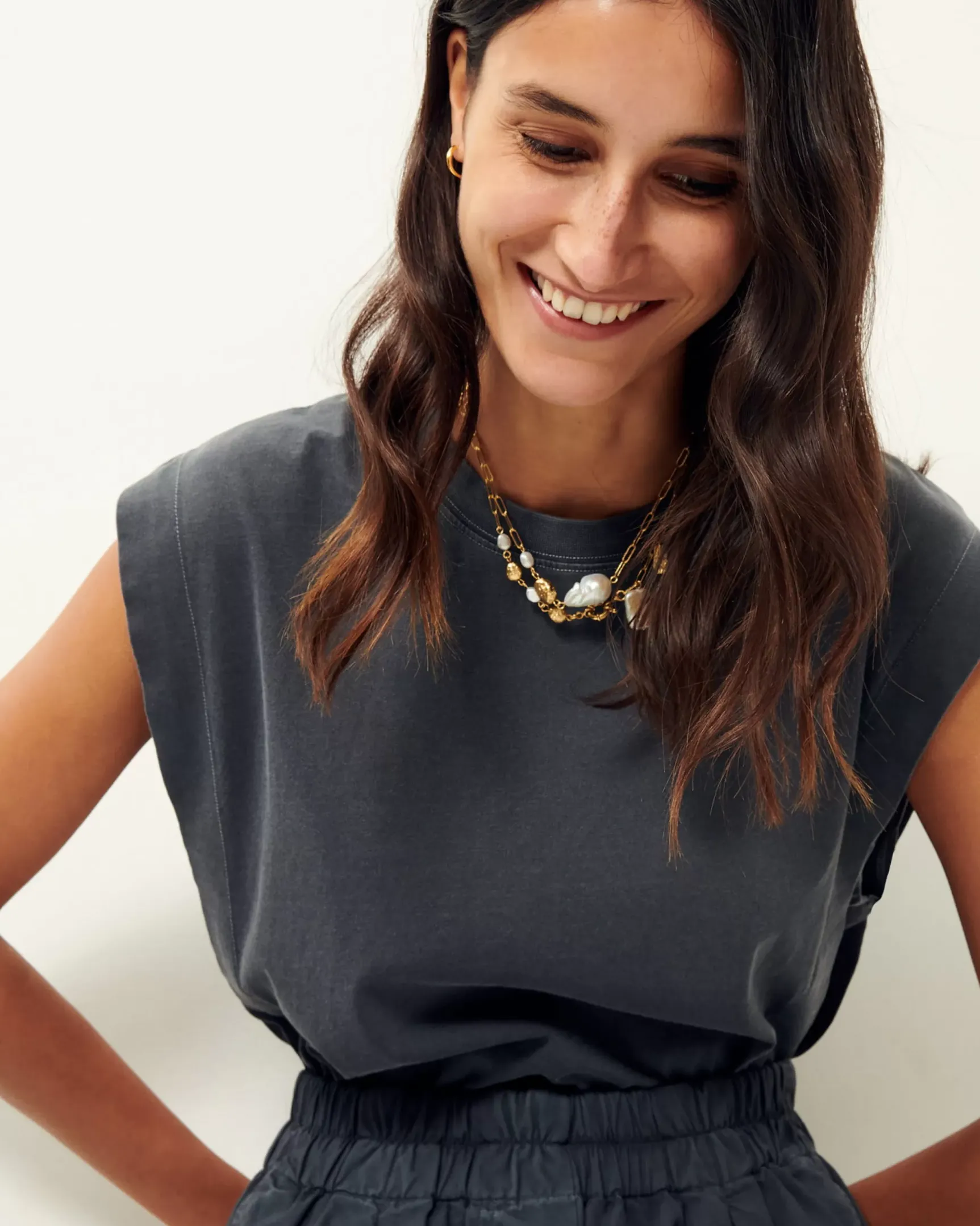 T-shirt sans manches à plis en jersey teint en pigmentaire, confectionné et teint artisanalement au Portugal.