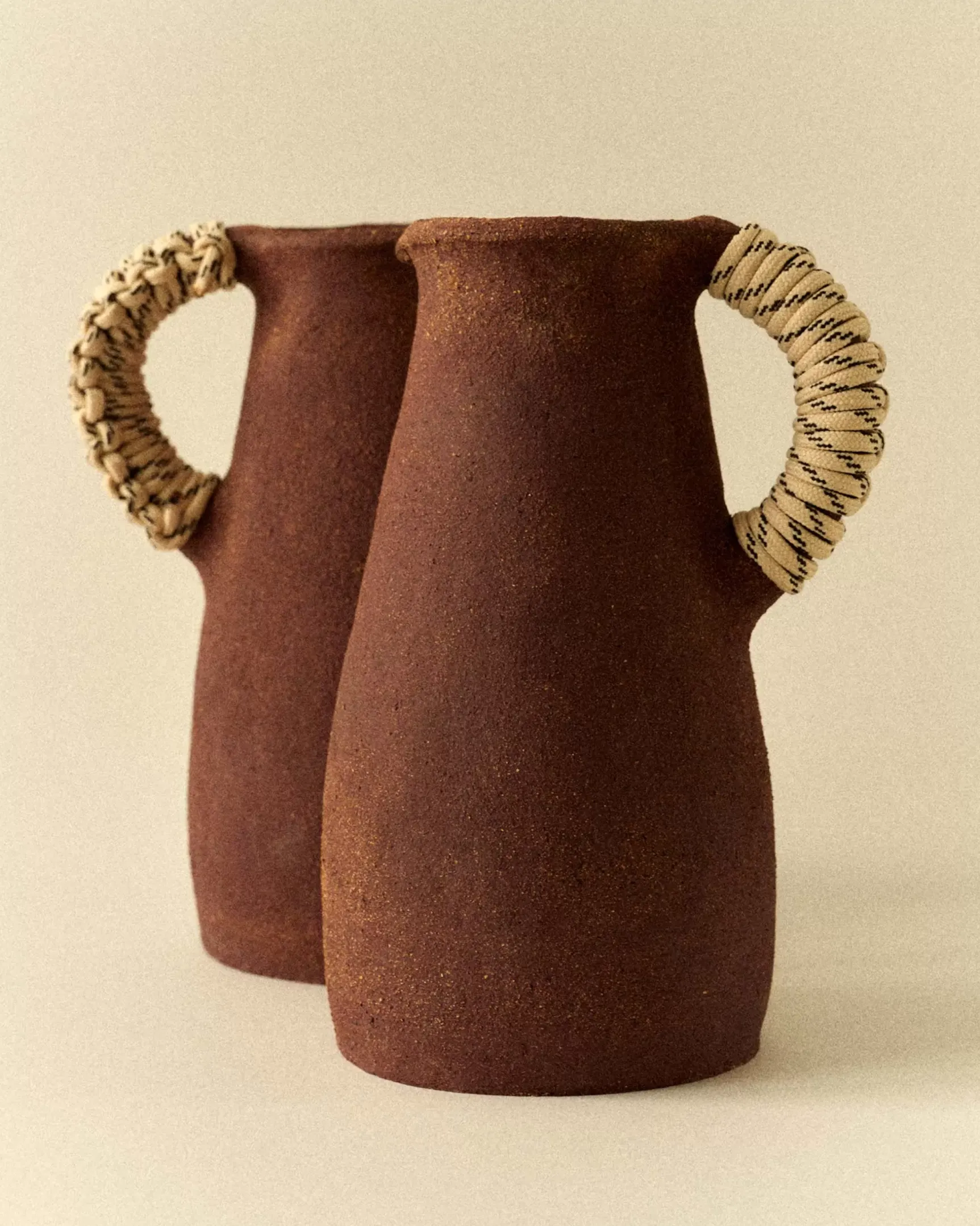 Réalisée par Simone Loo dans son atelier marseillais; en exclusivité pour Sessun, cette jarre dont la anse tressée d’une corde; fait écho aux poteries brutes mexicaines, et aux pichets en terre cuite du sud de la France.