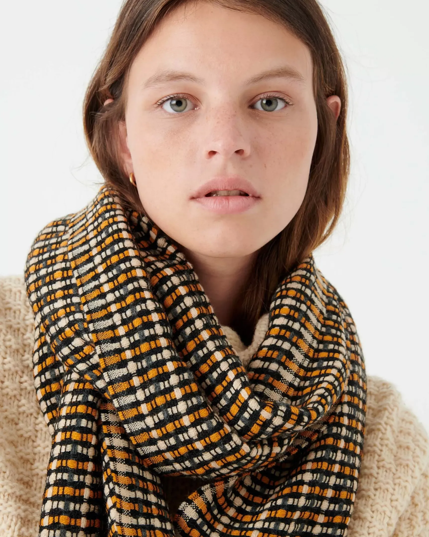 Echarpe, tissage exclusif Sessùn de fils contrastés, tissée en Italie.
