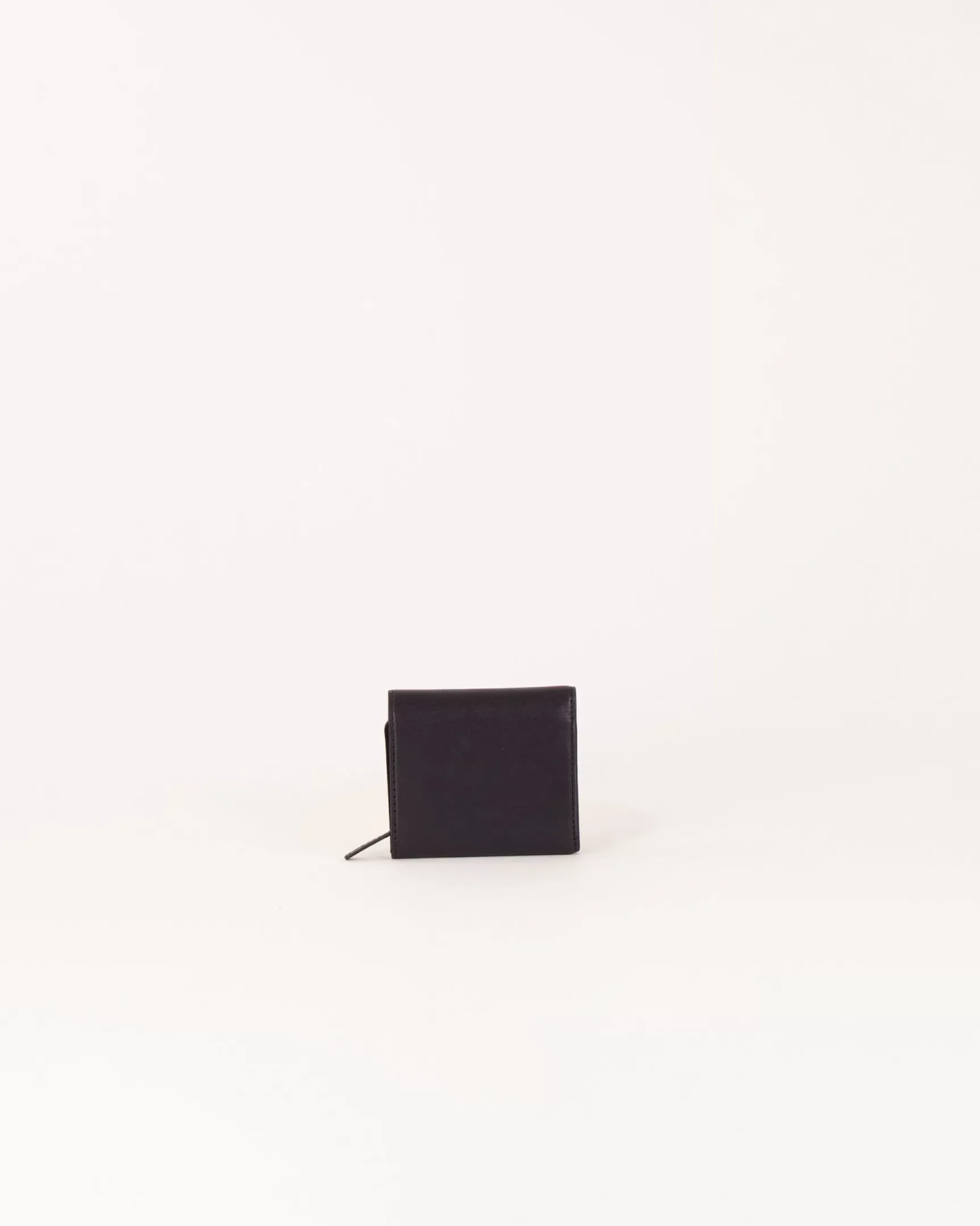 Porte-monnaie en cuir avec boucle décorative sur rabat.