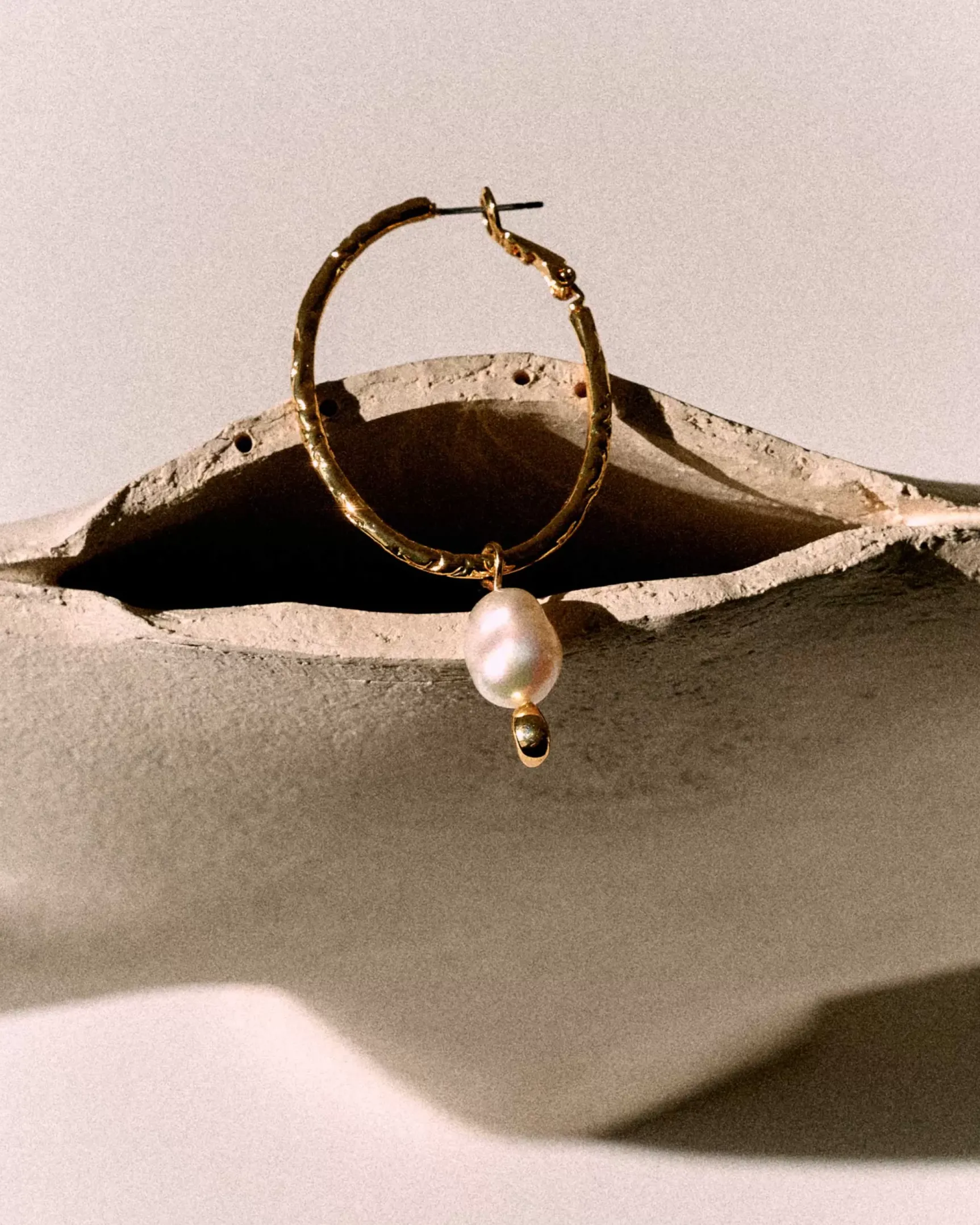 Boucles d’oreilles créole avec perle d’eau douce nacrée et perle dorée étoilée.