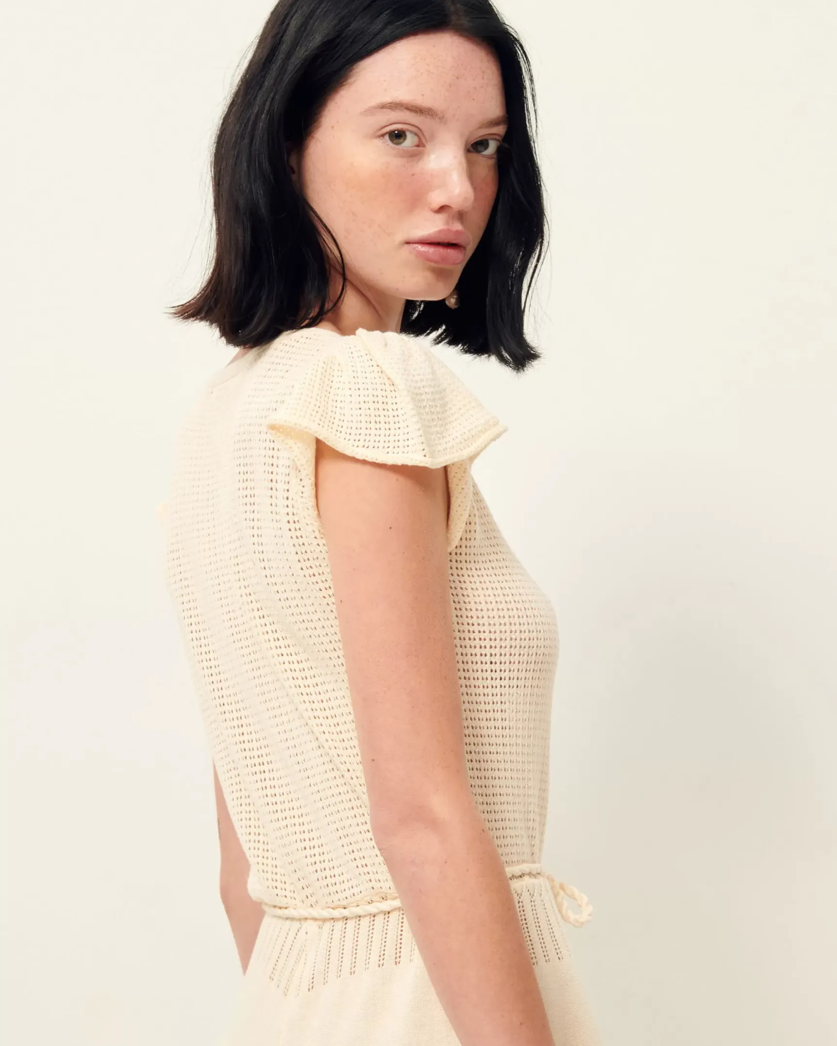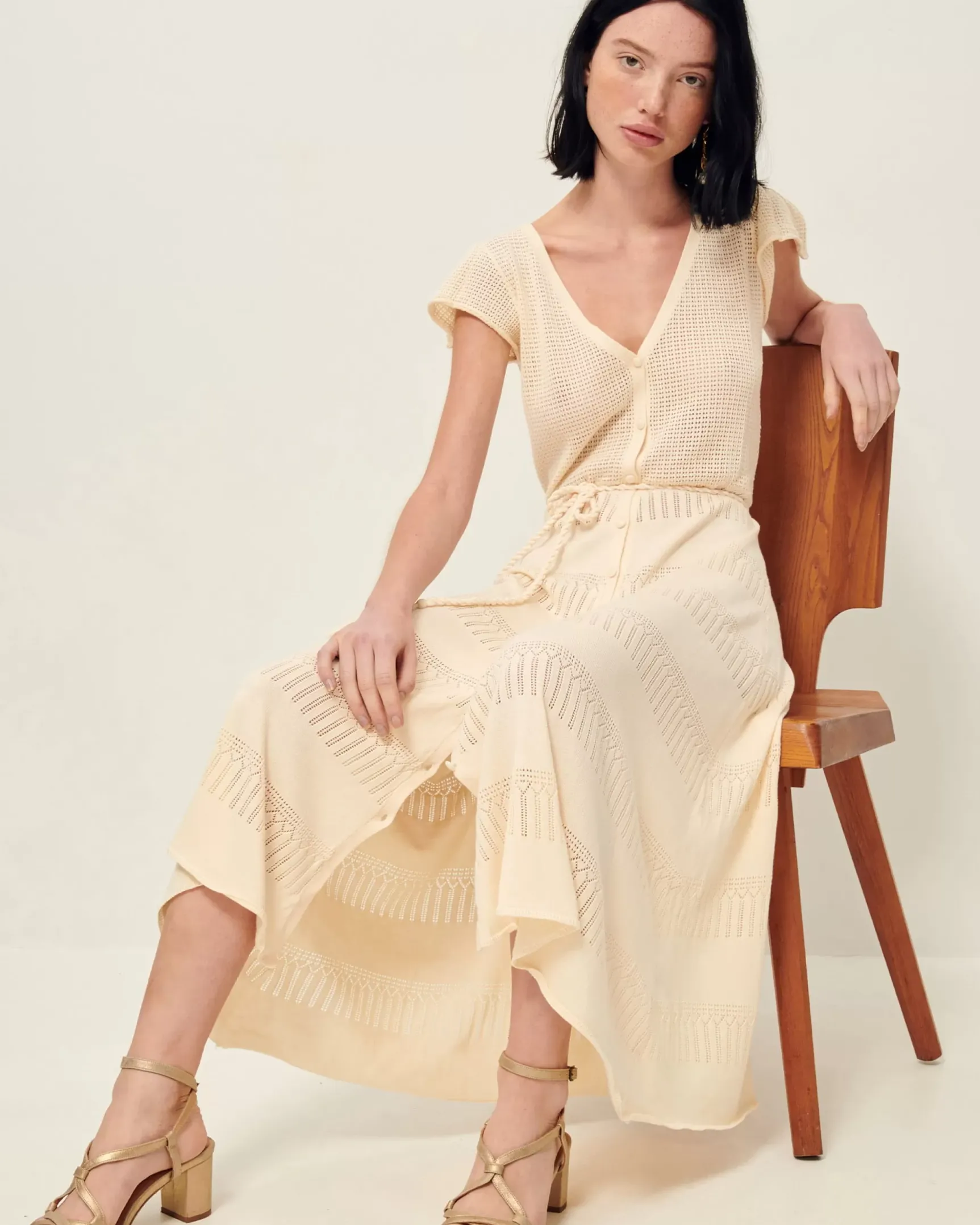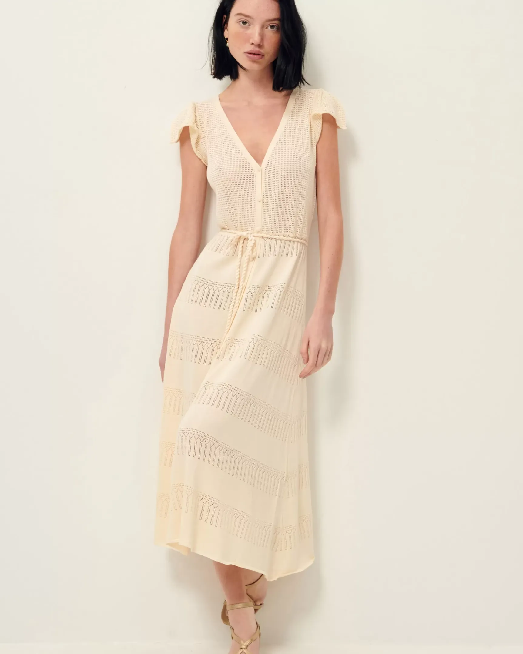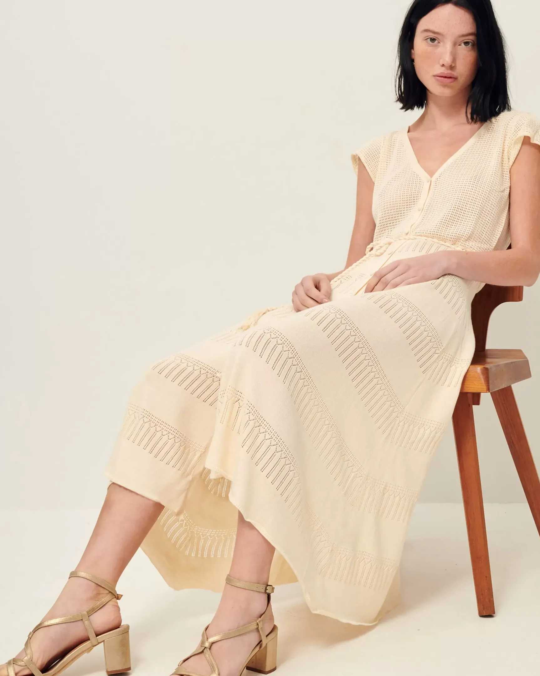 Robe mi-longue Alova en maille fantaisie à points ajourés.