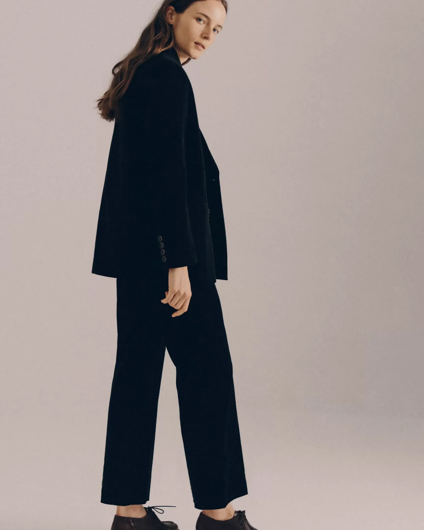 Pantalon droit taille haute en velours côtelé 300 raies.