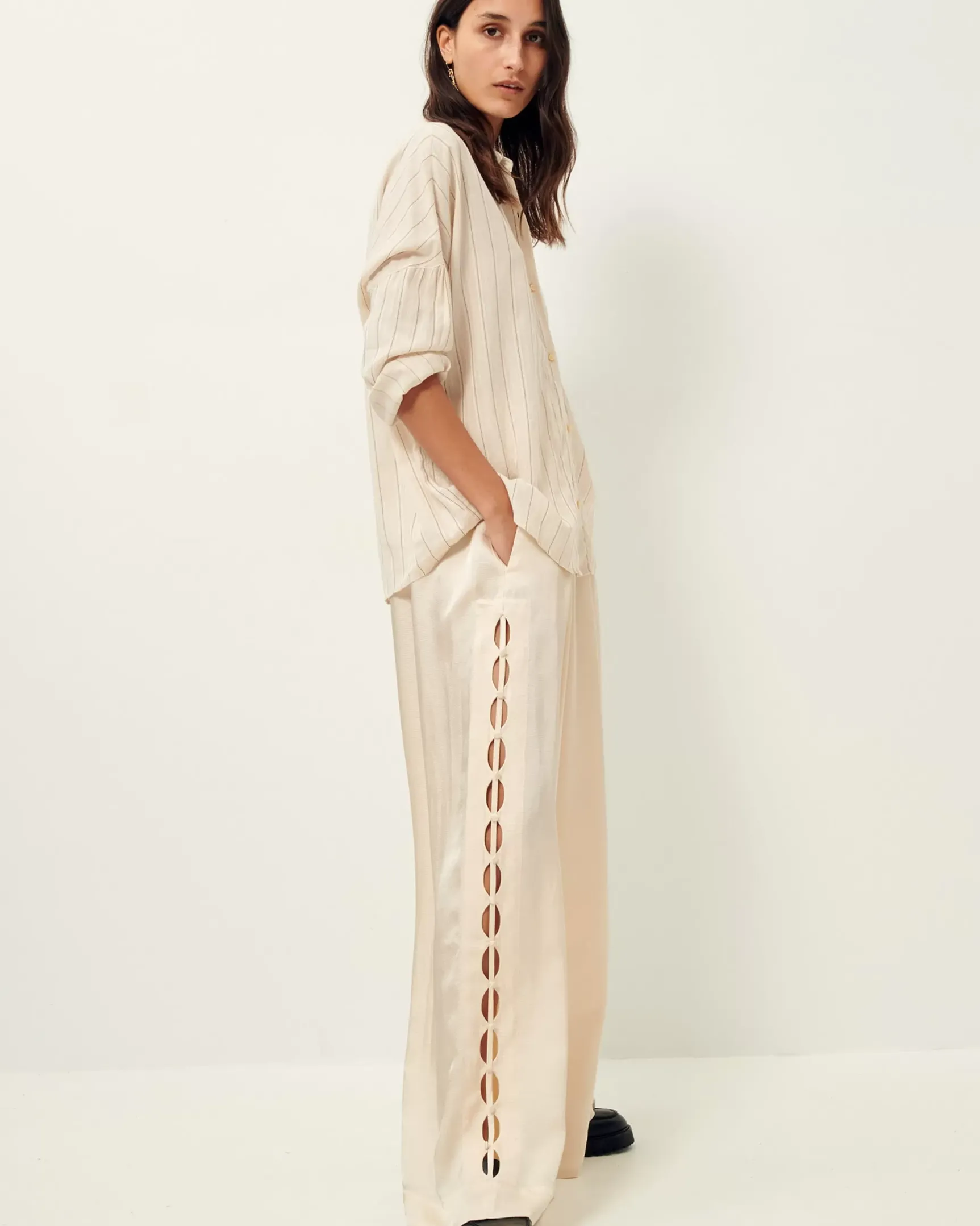 Détails ajourés le long de la jambe sur chaque côté.