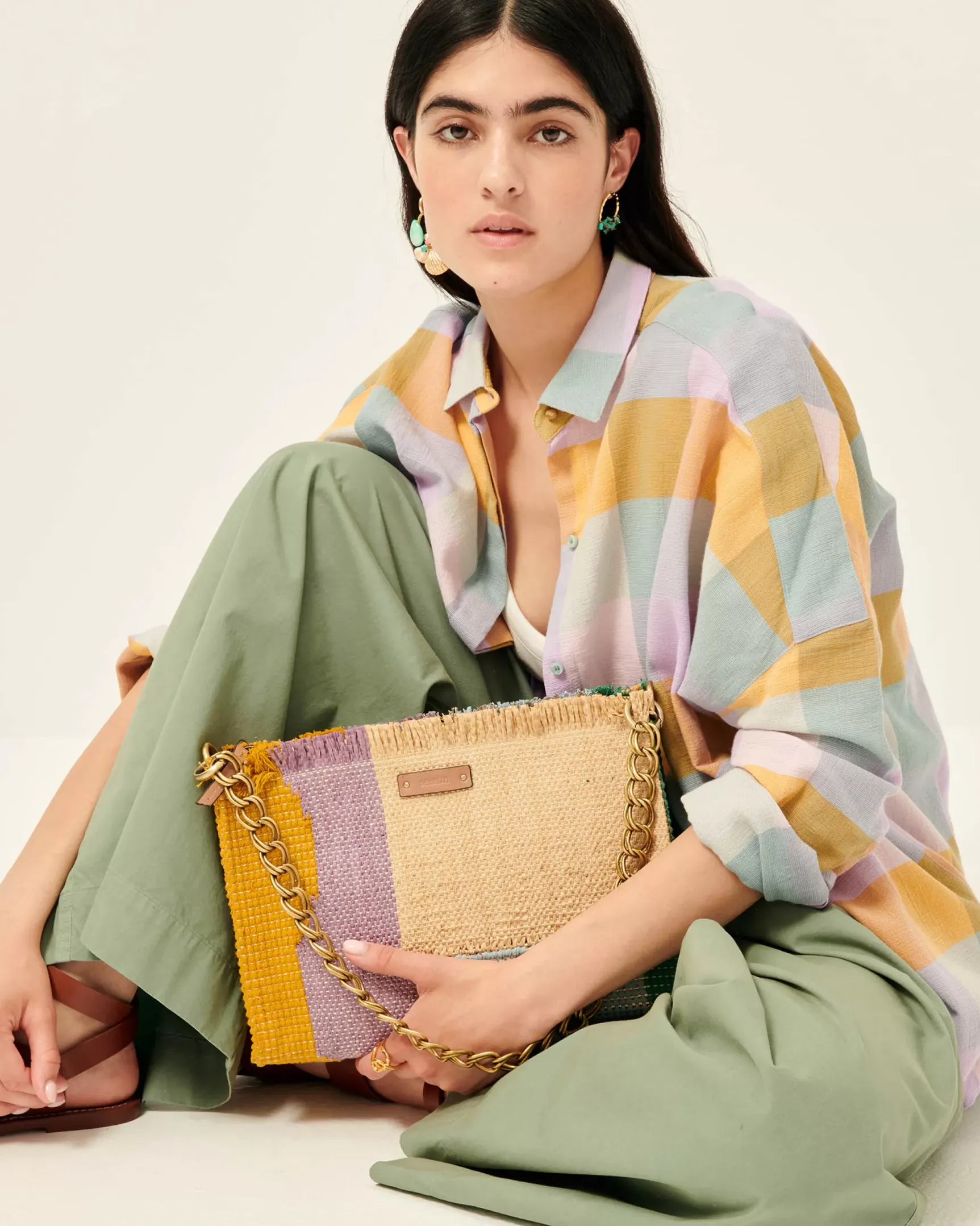 Chemise ample à emmanchures basses en gaze de coton à carreaux madras tissé en France, exclusive Sessùn.