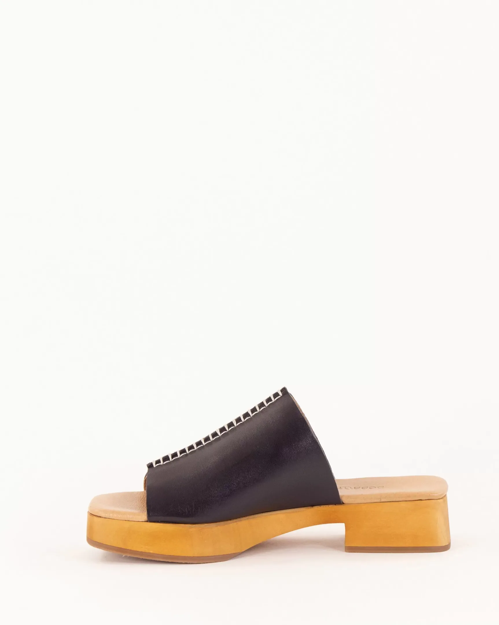 Mules esprit sabot avec détails de surpiqûres contrastées en cuir de vache, confectionnées en Portugal.