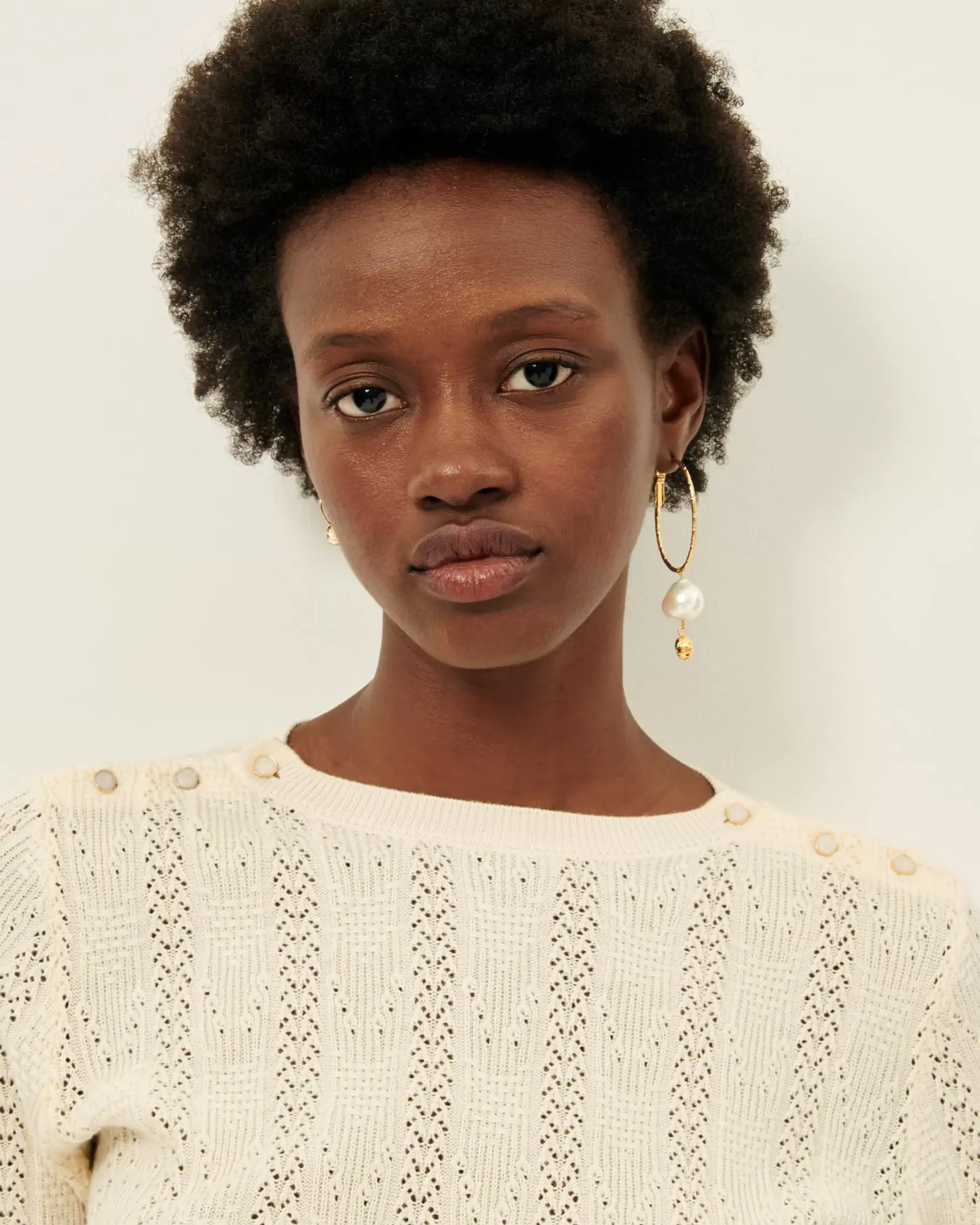 Pull ajusté en maille fantaisie à points ajourés.