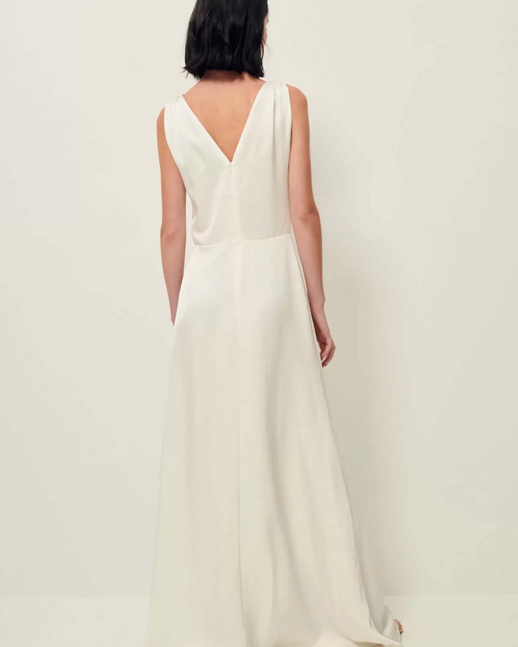 Découpe à la taille avec détails de fronces devant au dessus et en dessous.