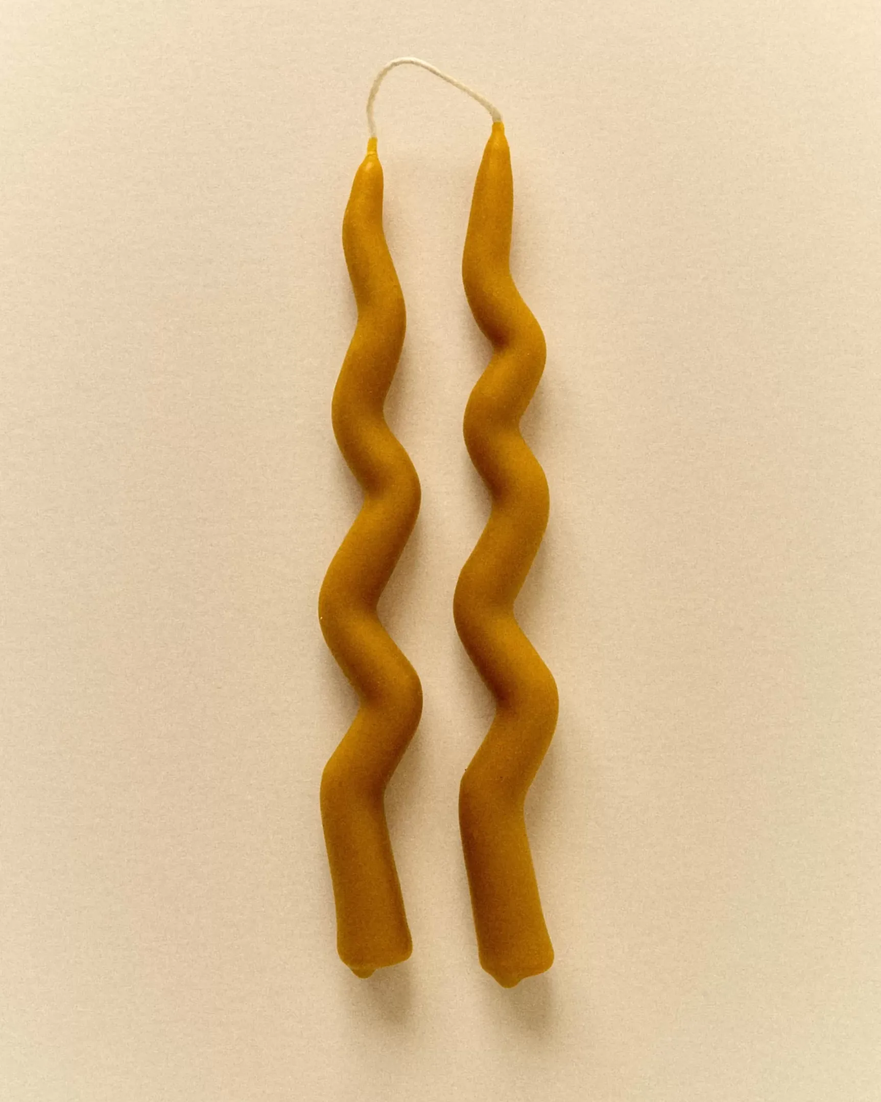 Fabriquées à partir de cire d’abeille de Provence. La mèche est trempée dans un chaudron de cire fondue une trentaine de fois pour créer cette bougie couche par couche.