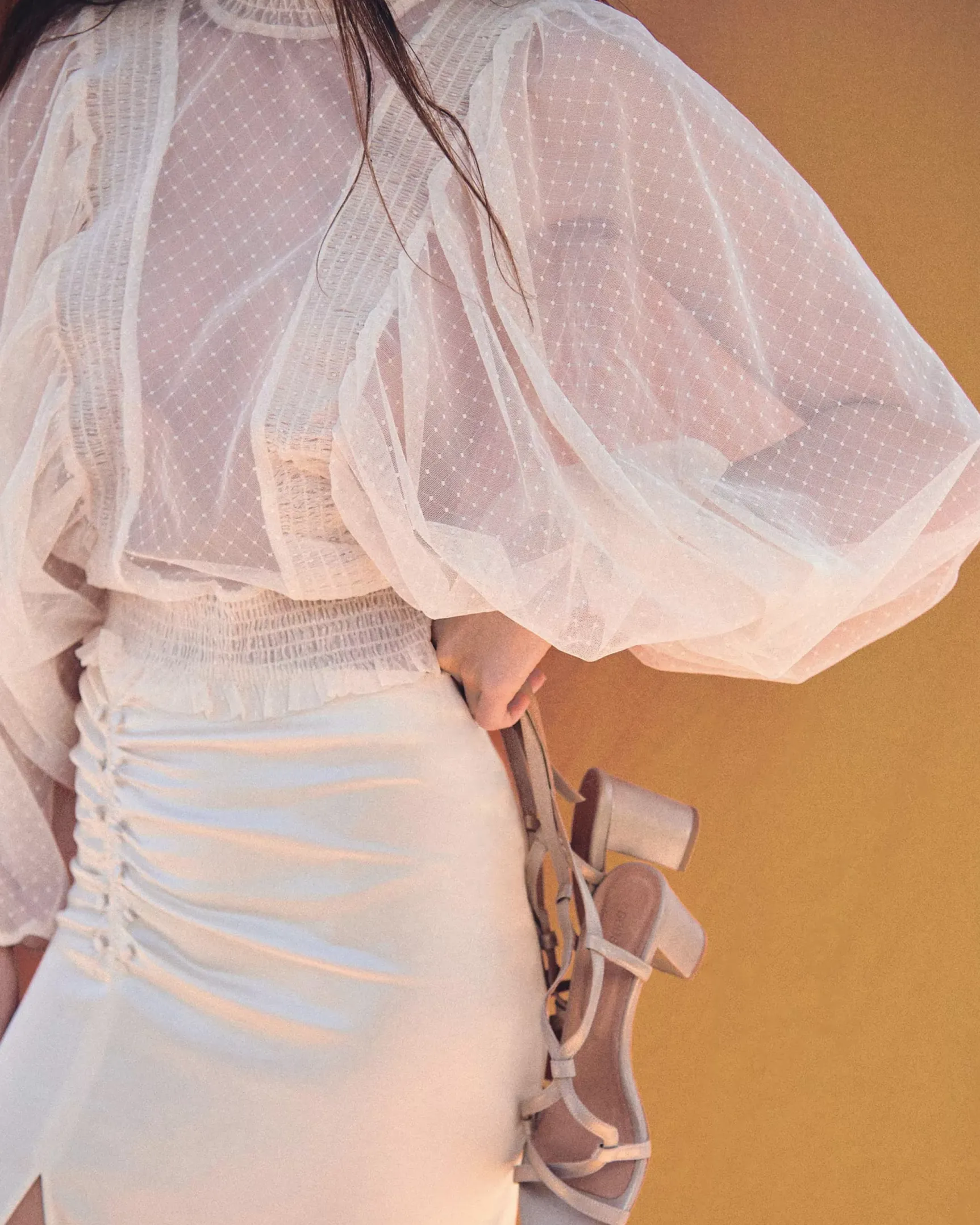 Détails de fronces et fente devant.