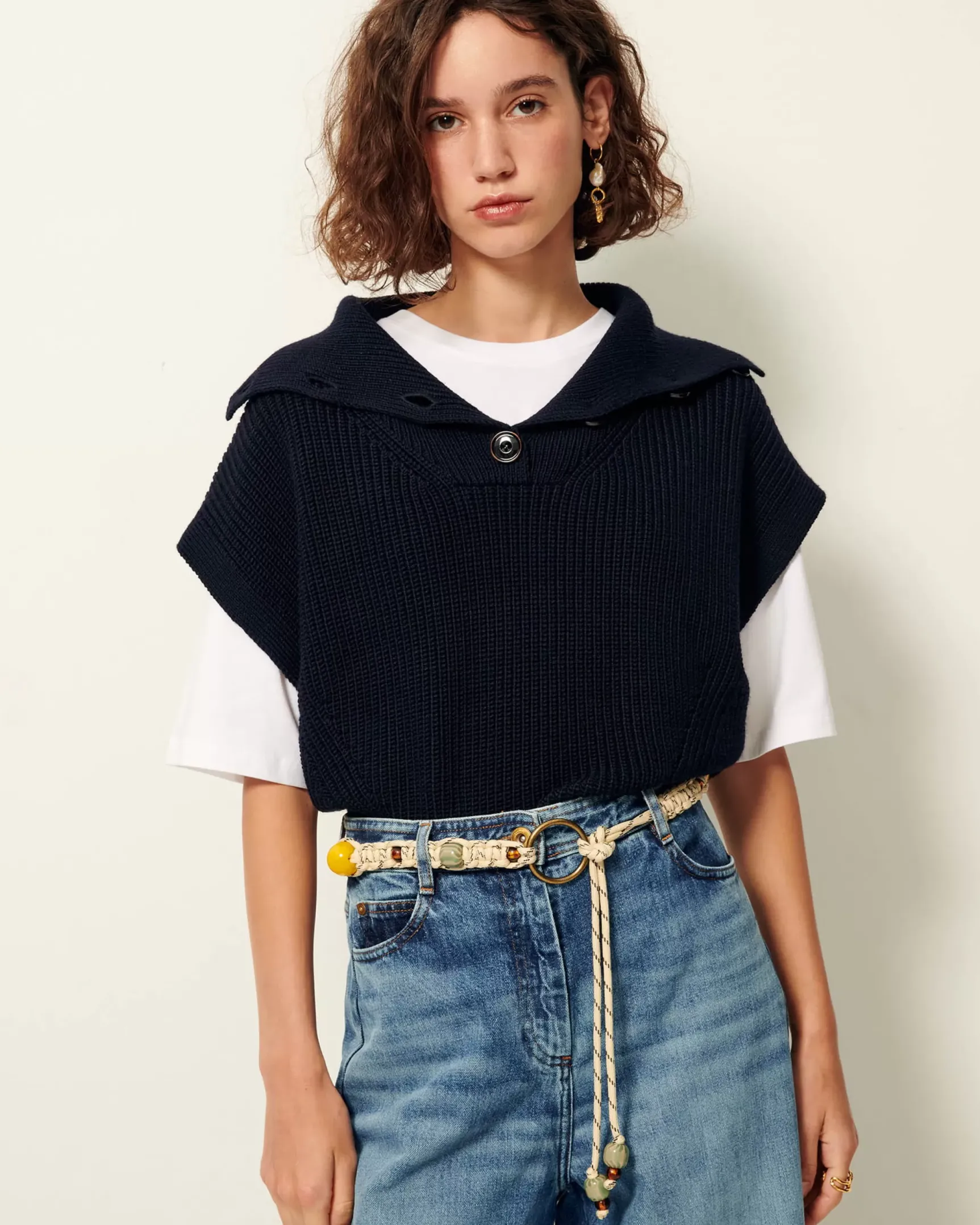 Ceinture fantaisie à nouer en corde et perles.